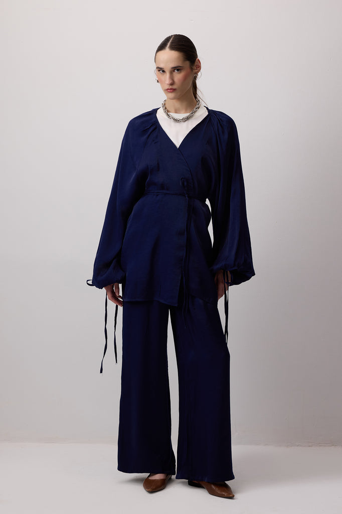 BİYE DETAYLI BOL PAÇA KETEN PANTOLON