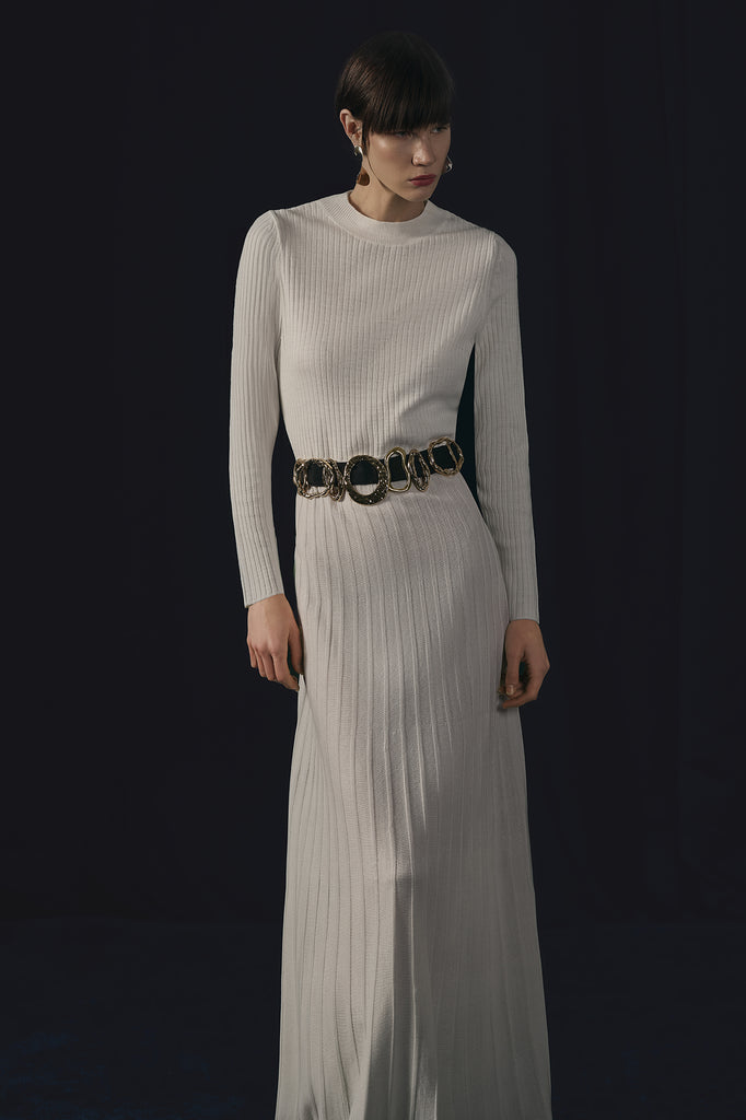 FİTİLLİ DİK YAKA TRİKO ELBİSE