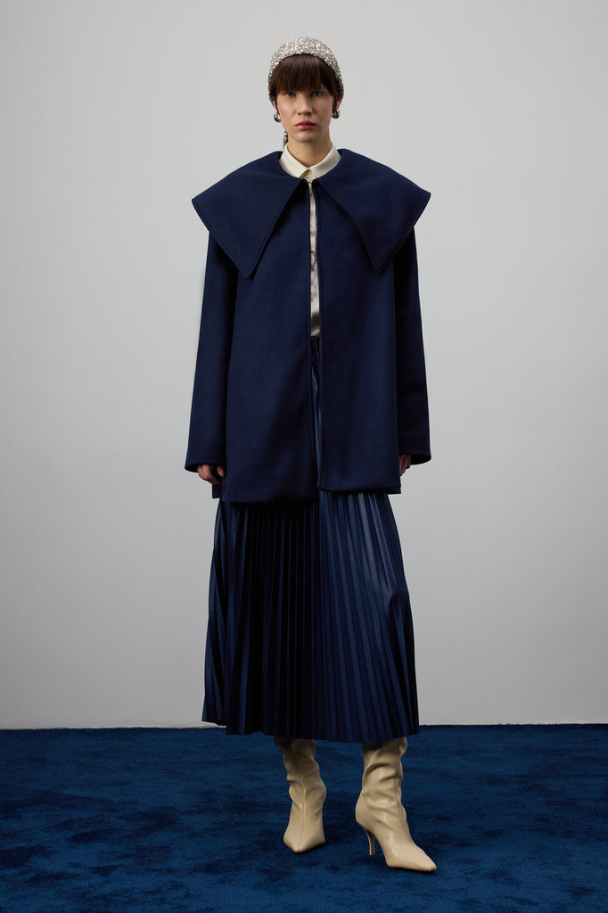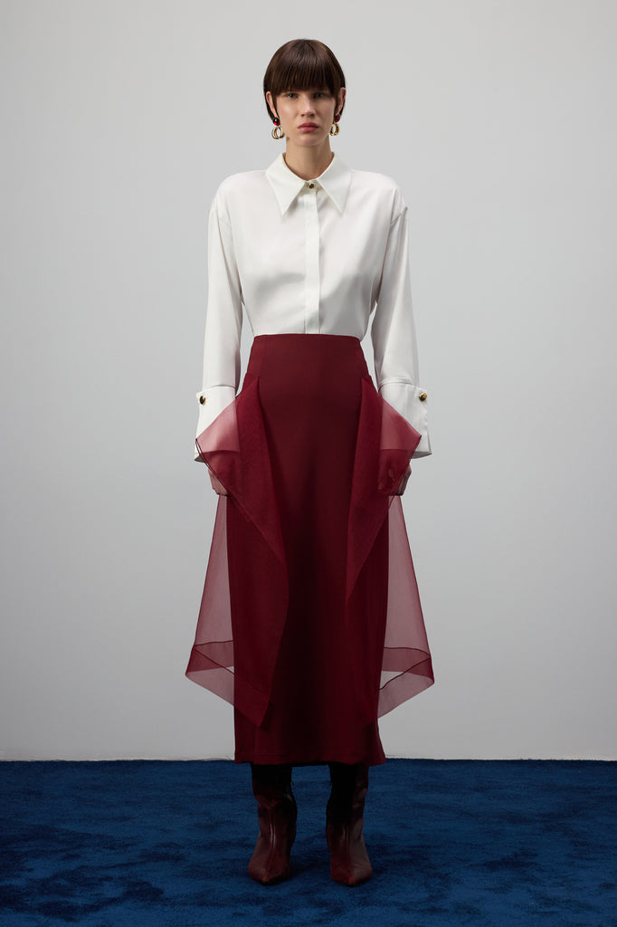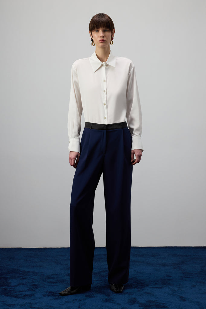 PİLELİ ASİMETRİK POPLİN GÖMLEK