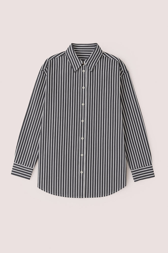 İNCE ÇİZGİLİ OVERSIZE GÖMLEK