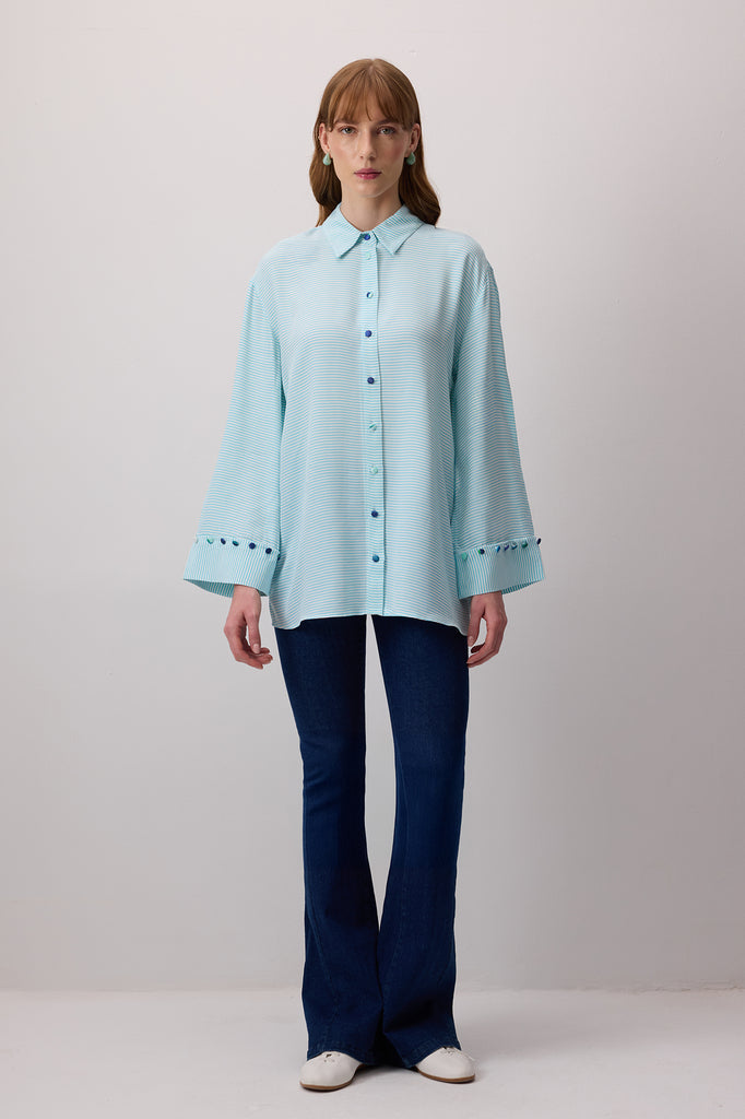 İNCE ÇİZGİLİ OVERSIZE GÖMLEK