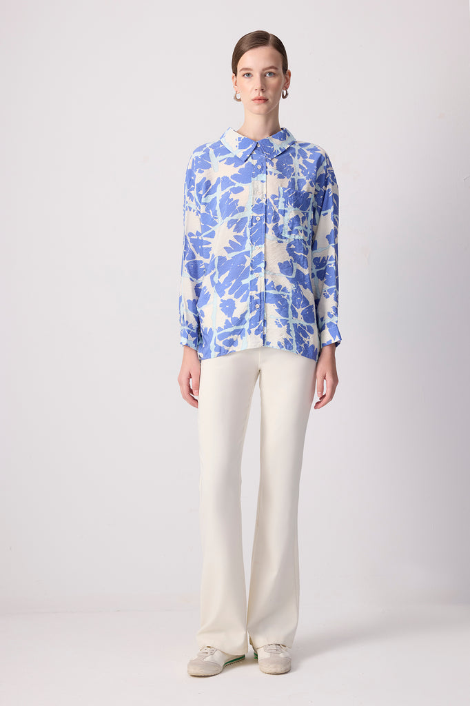 %100 PAMUKLU GENİŞ MANŞETLİ DESENLİ GÖMLEK