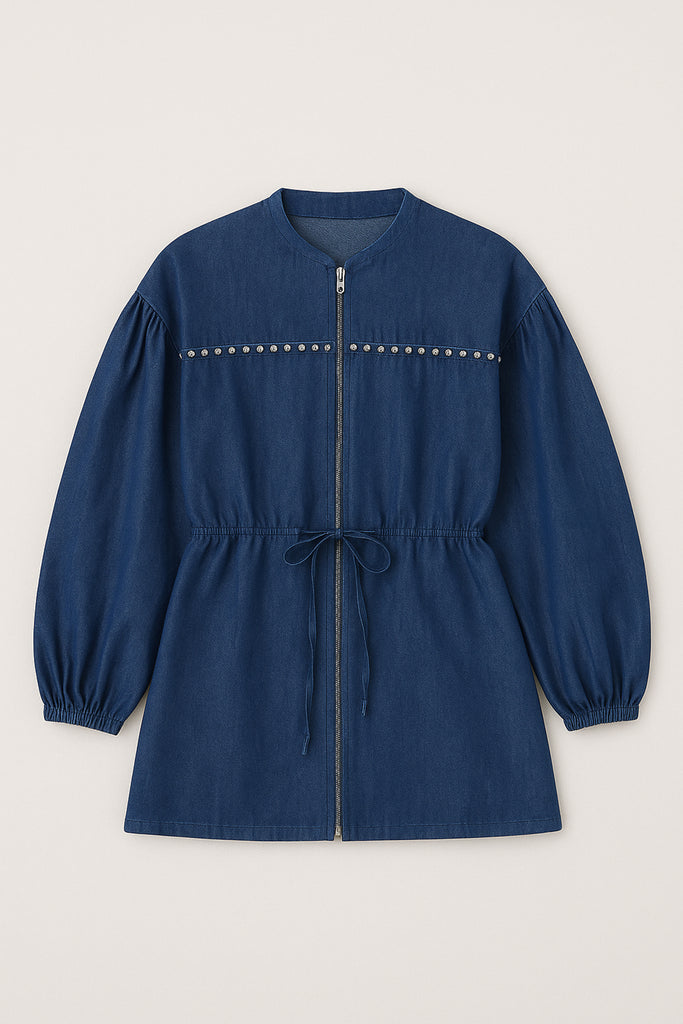 DENİM EFEKTLİ TAŞ İŞLEMELİ OVERSIZE CEKET