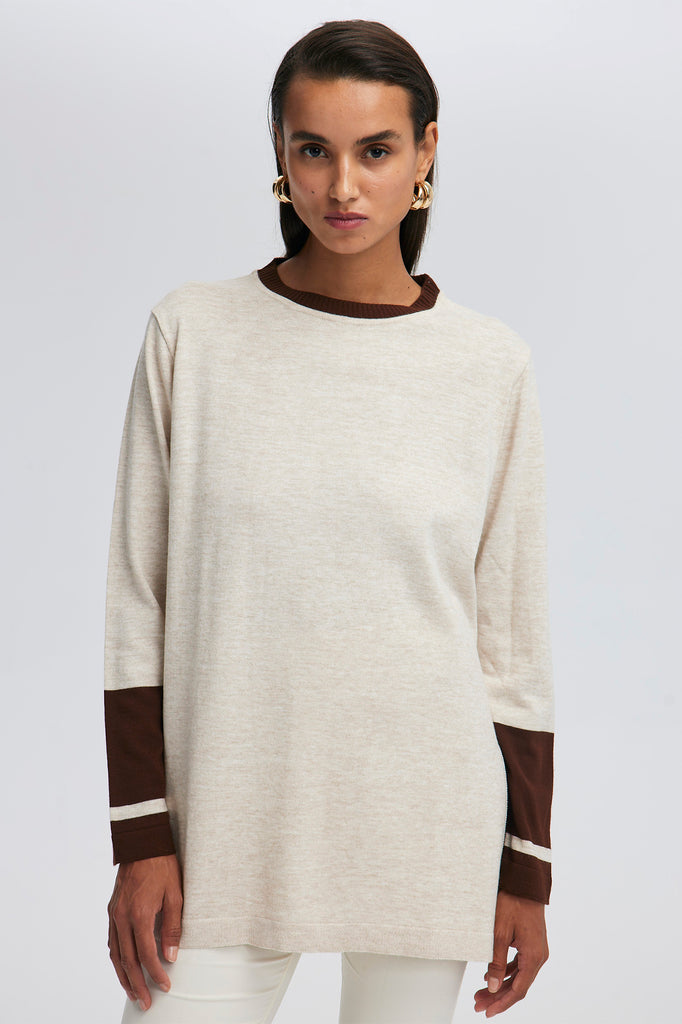 BLOK RENKLİ BASKILI TRİKO KAZAK