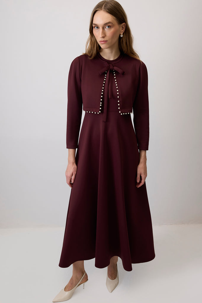 KONTRAST PAYETLİ KREP ELBİSE