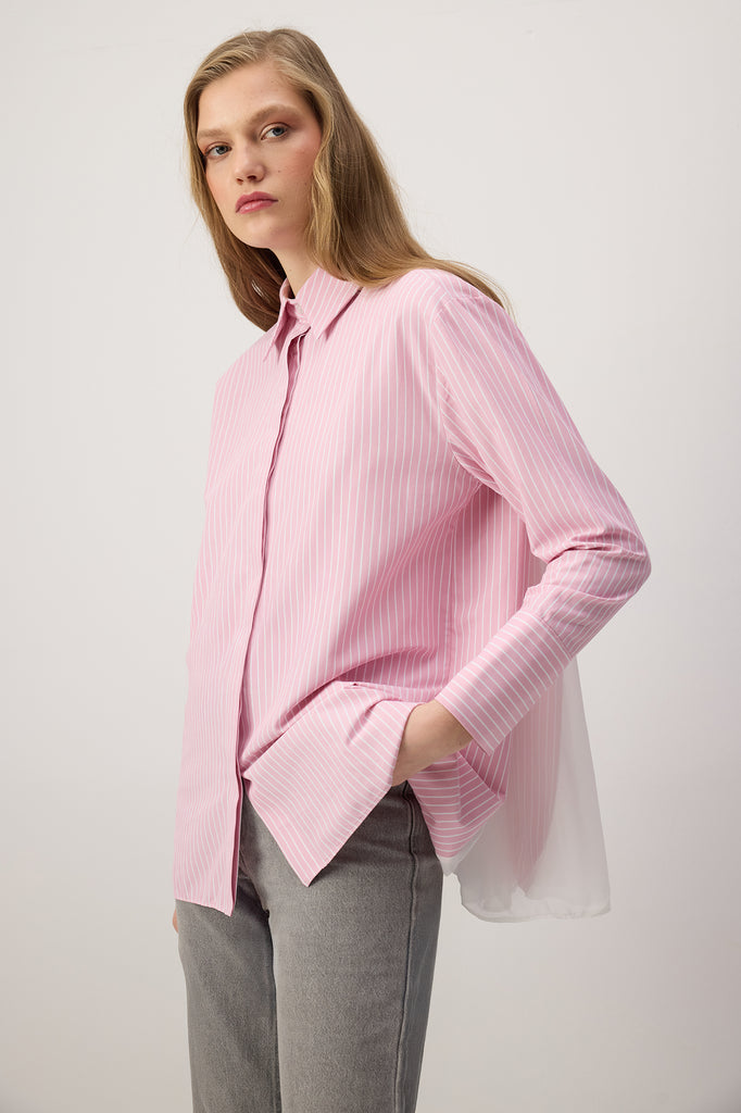 ŞİFON DETAYLI ÇİZGİLİ OVERSIZE GÖMLEK