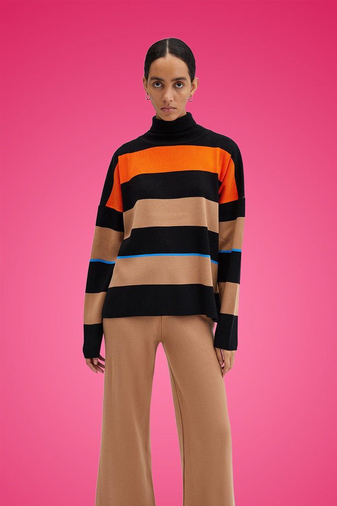 BLOK RENKLİ ÇİZGİLİ TRİKO KAZAK