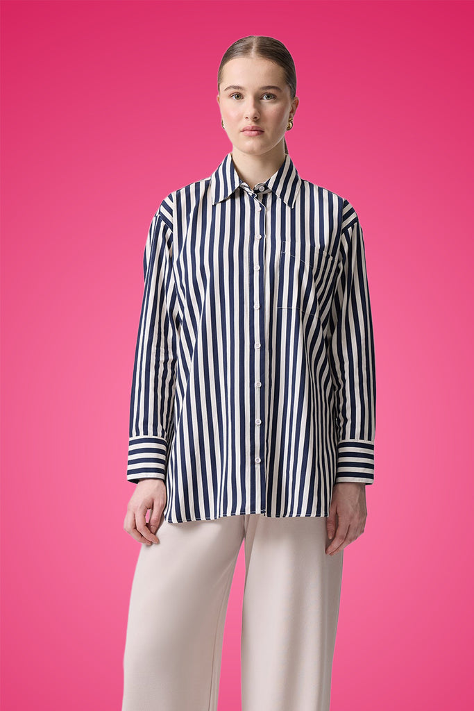 İNCE ÇİZGİLİ OVERSIZE GÖMLEK