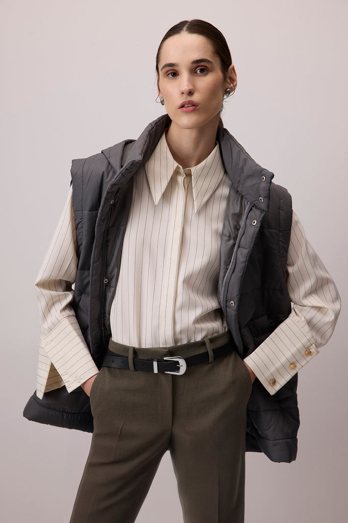 GENİŞ MANŞETLİ ÇİZGİLİ GÖMLEK