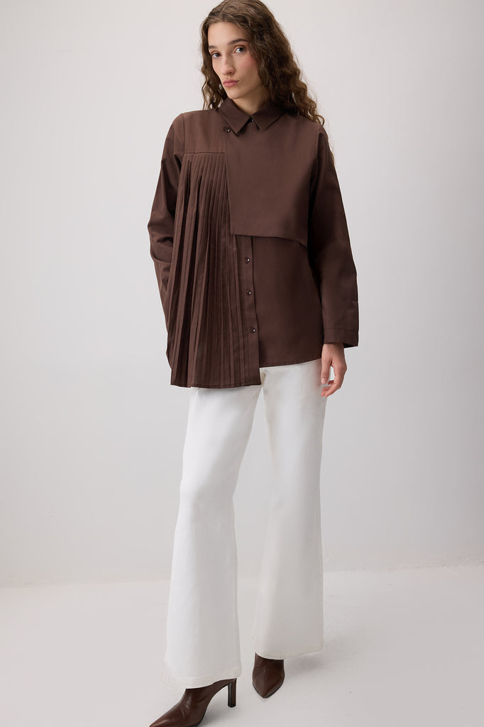 PİLİSE DETAYLI ASİMETRİK GÖMLEK