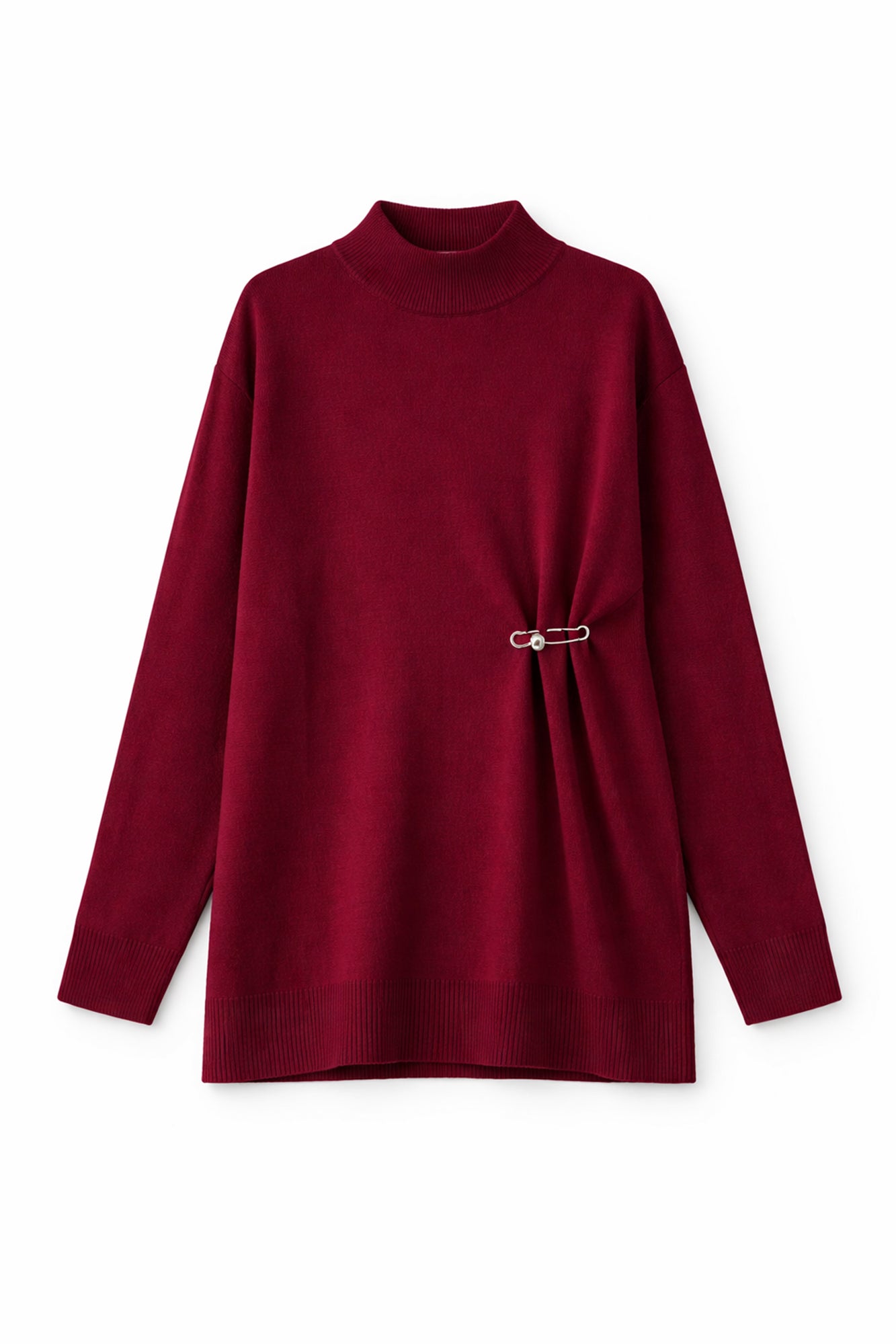 Aksesuarlı. Yüksek yakalı triko tunik.