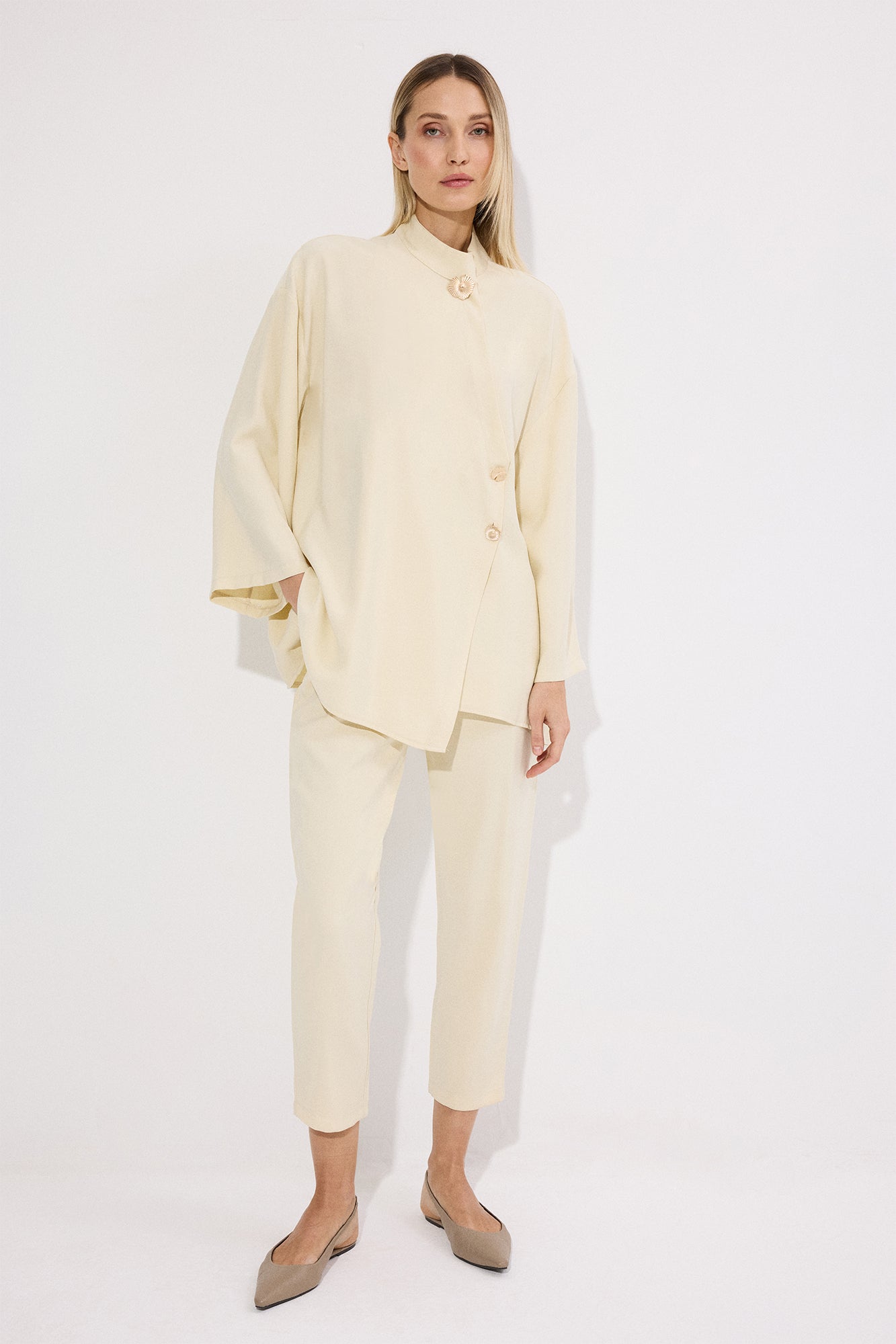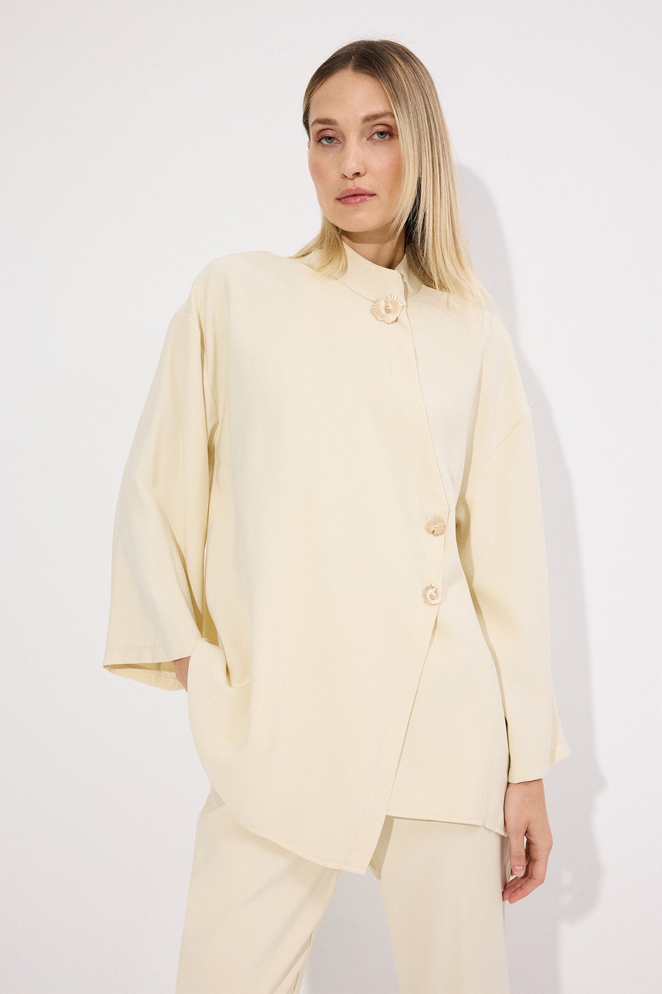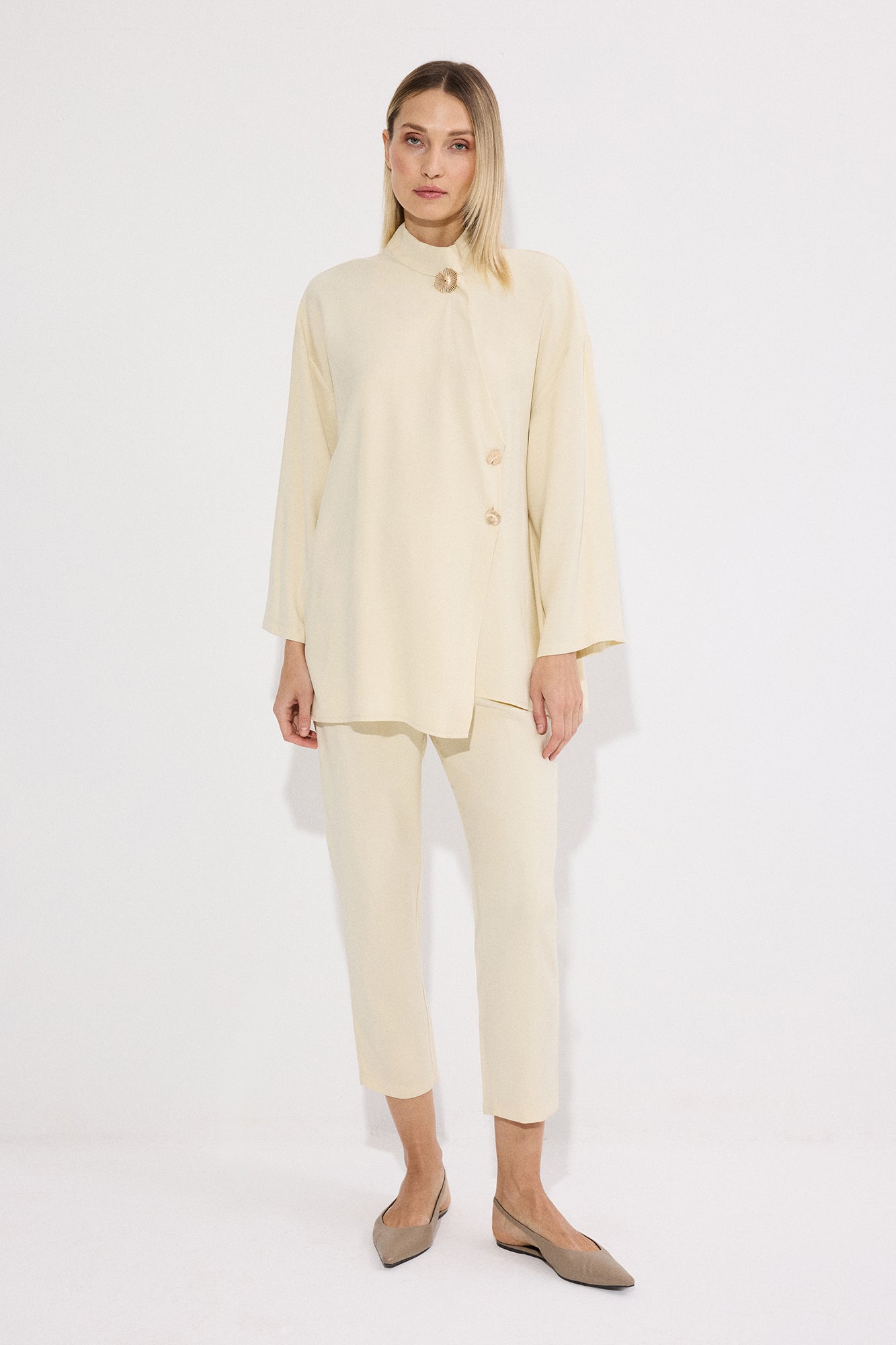 ASİMETRİK DÜĞME DETAYLI PANTOLON TAKIM
