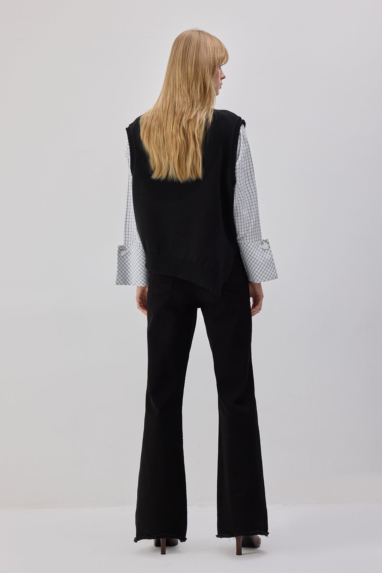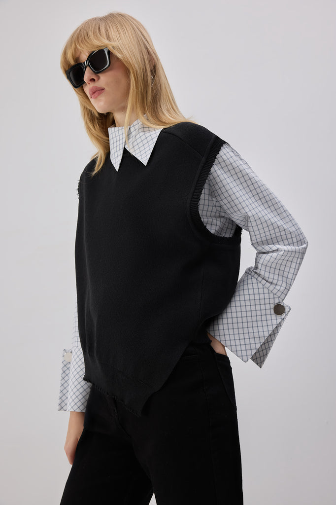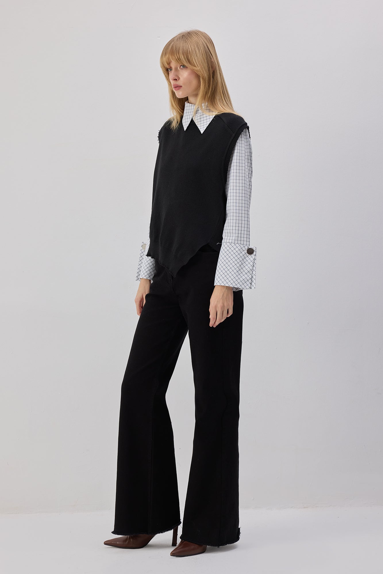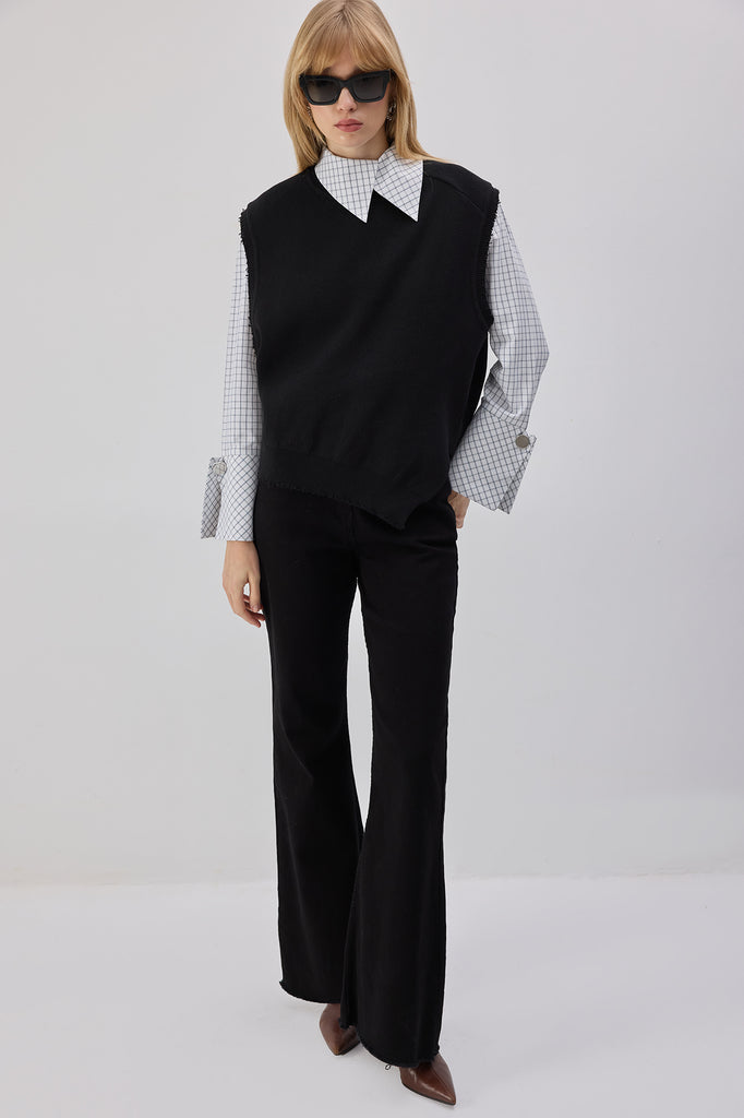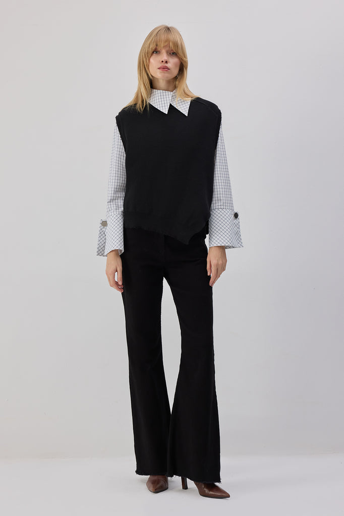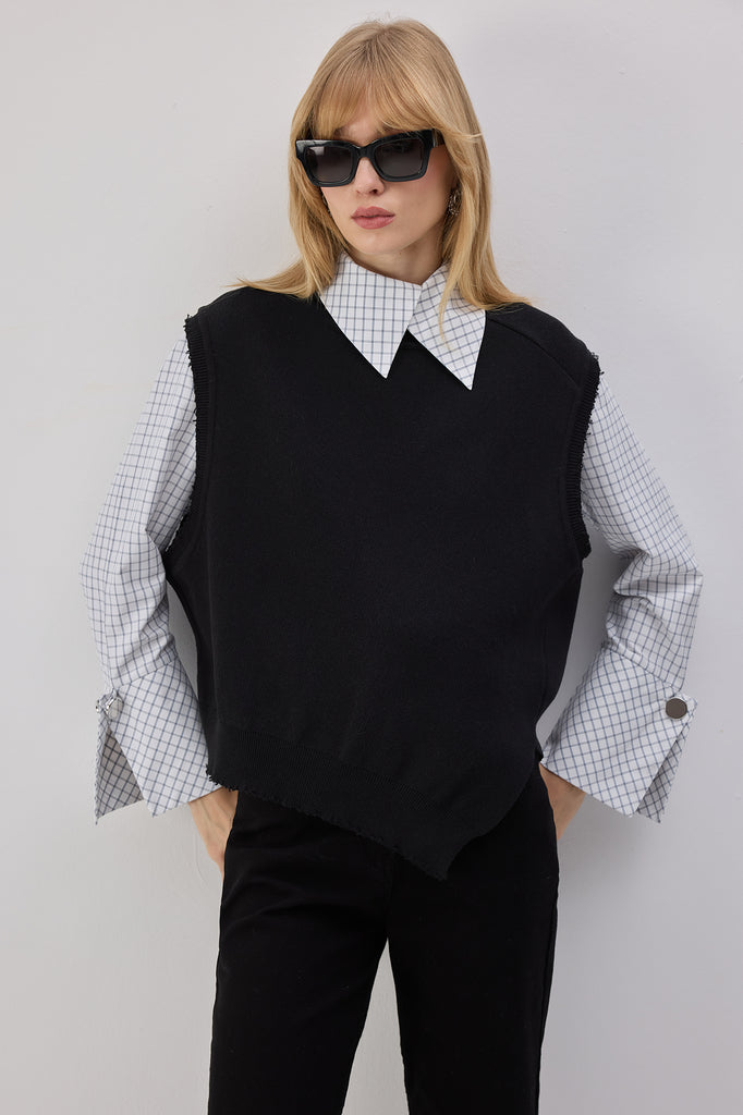 Asimetrik kesimli. Nervür detaylı. Triko Süveter.