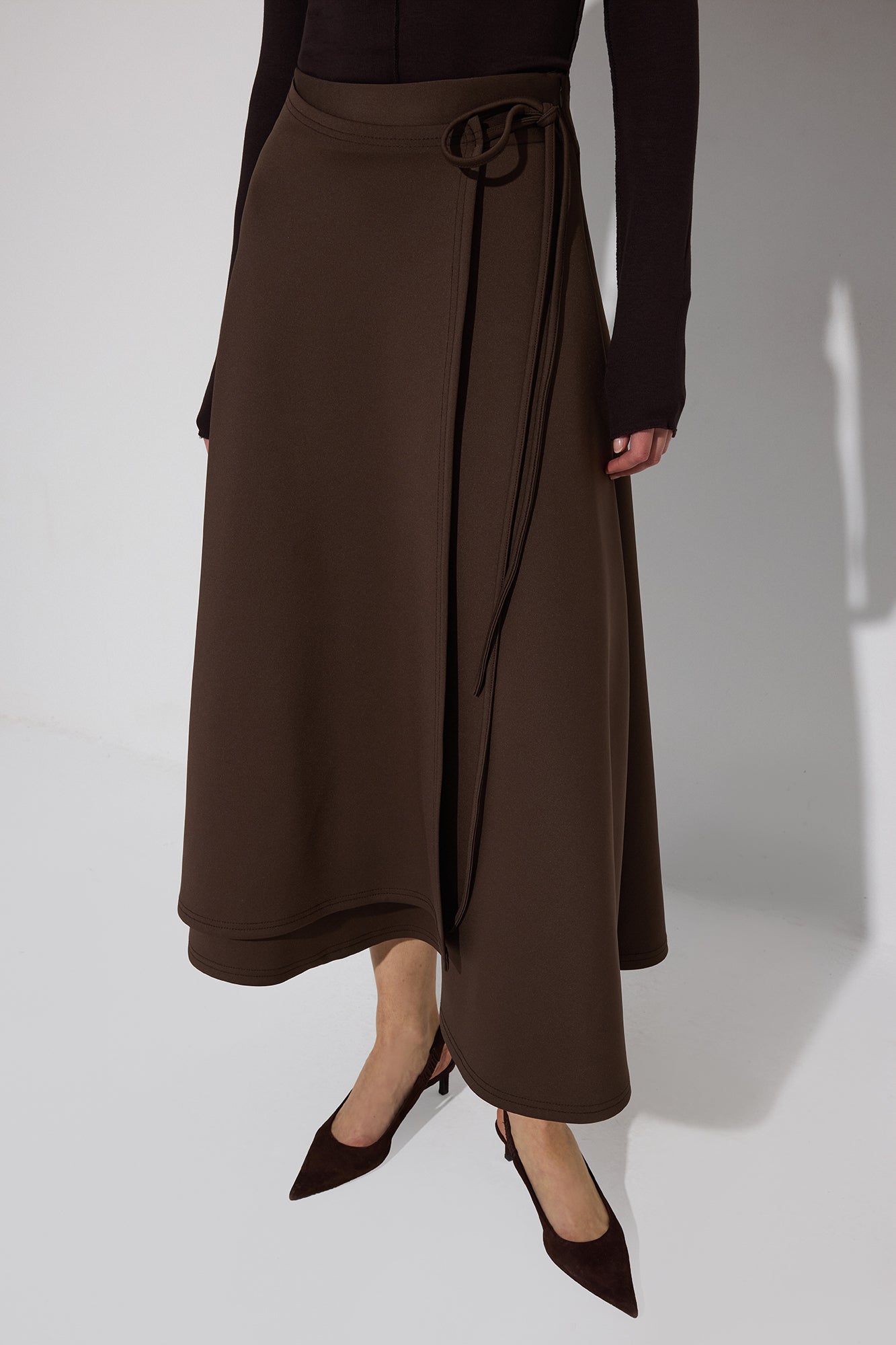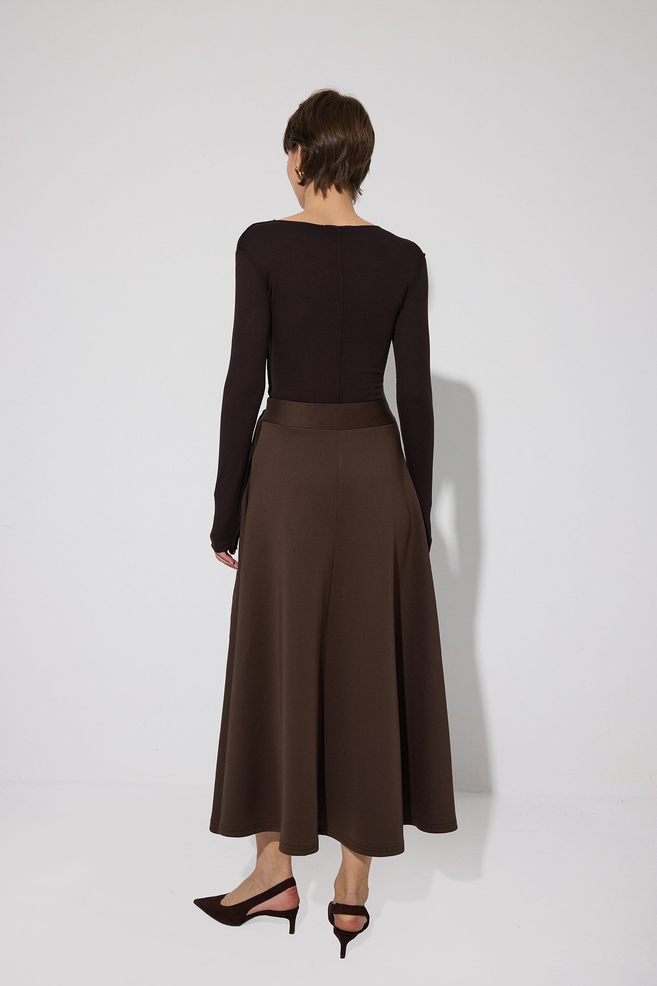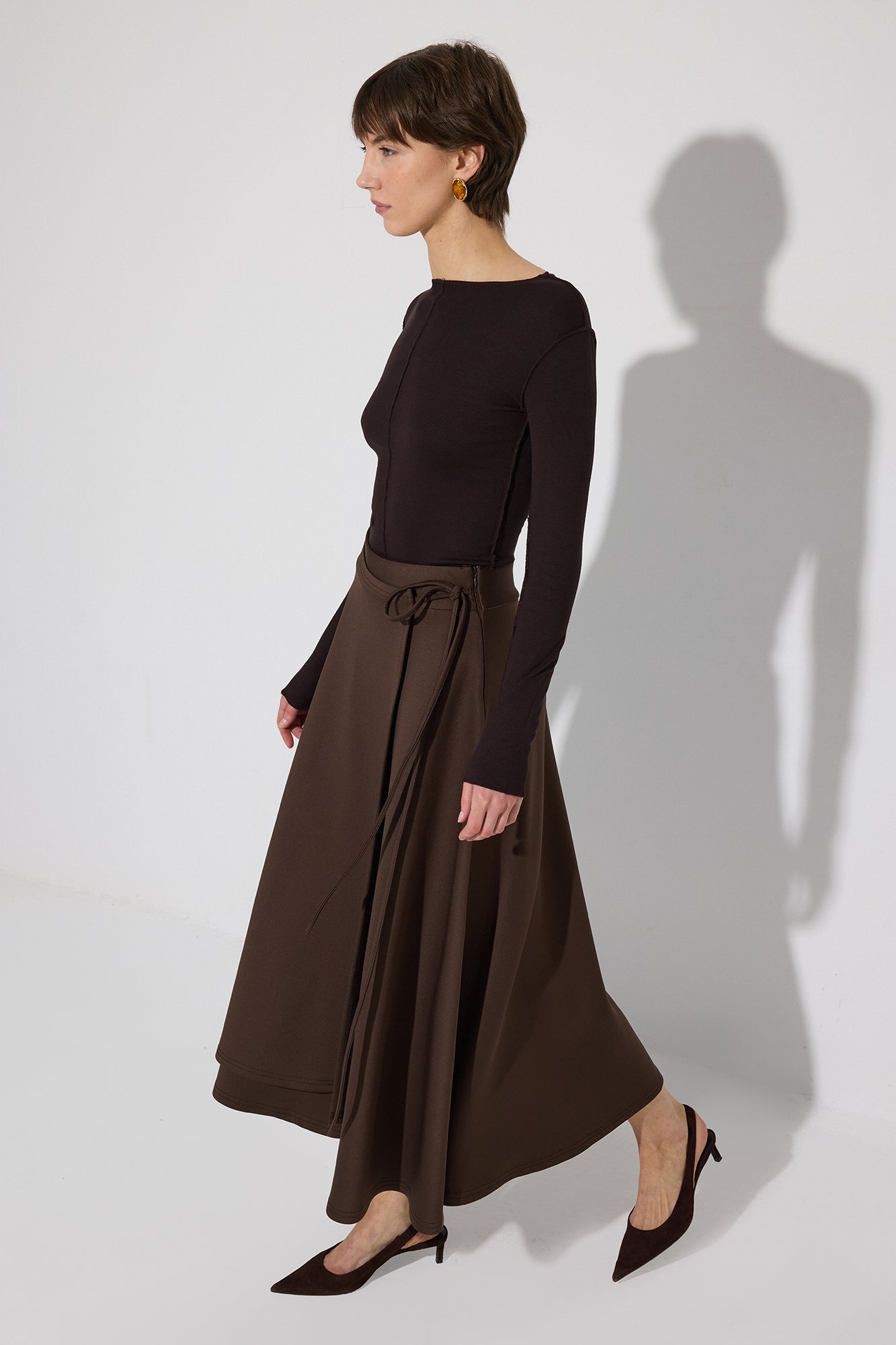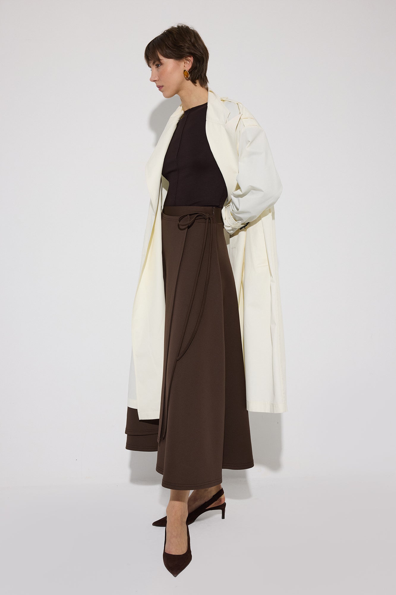 Yüksek bel. Midi boy. Yan gizli fermuar kapama. Bağlama detaylı.