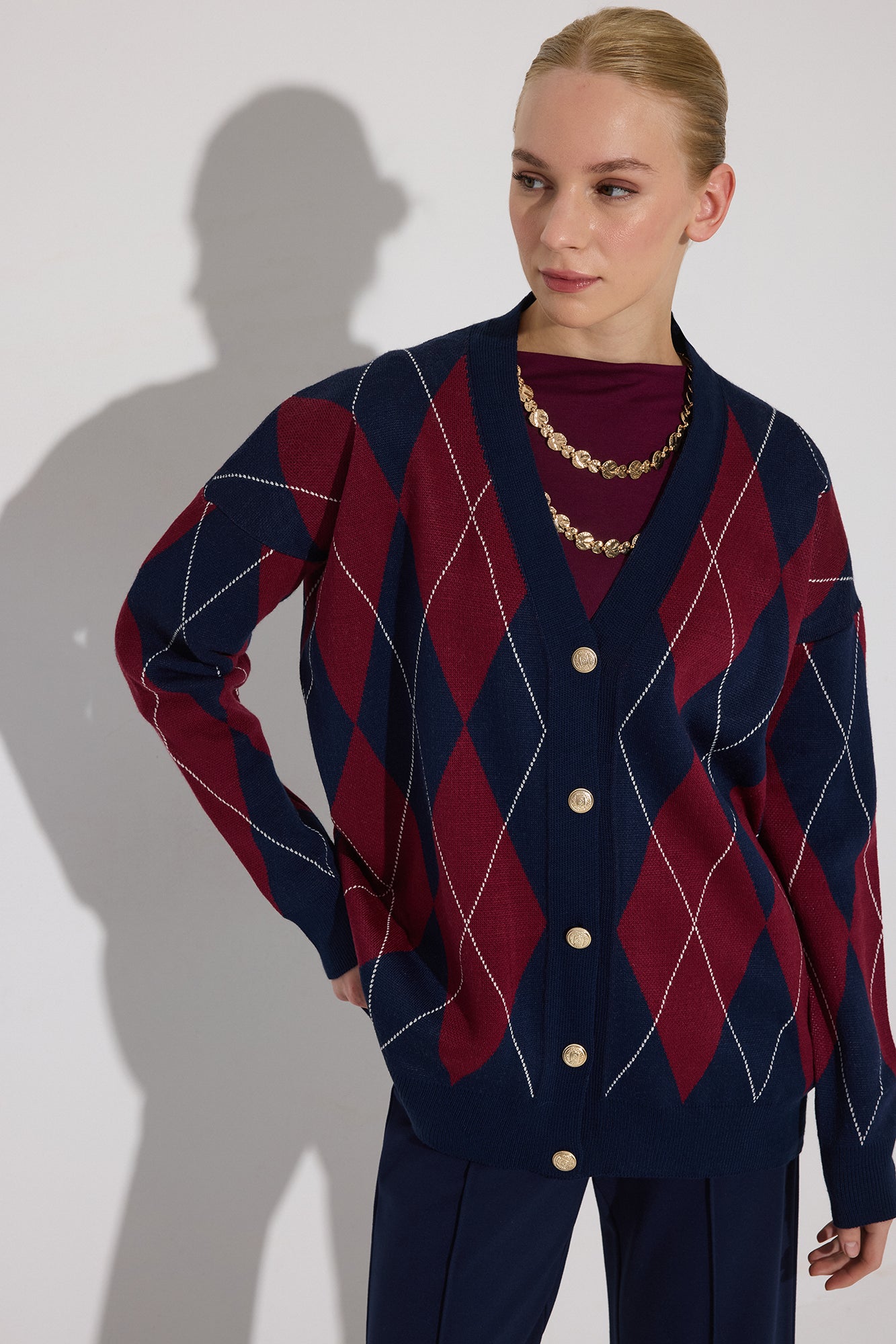 BAKLAVA DESENLİ OVERSIZE HIRKA