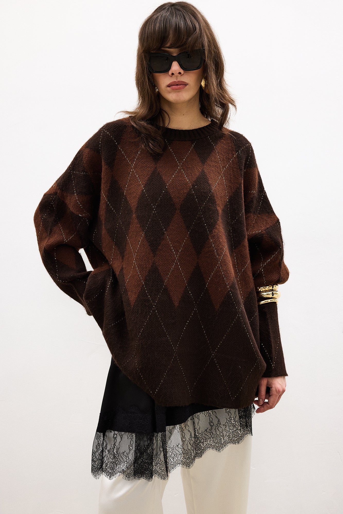 BAKLAVA DESENLİ SİMLİ TRİKO KAZAK