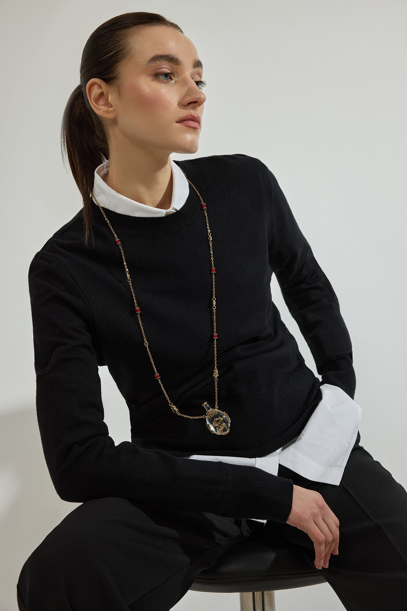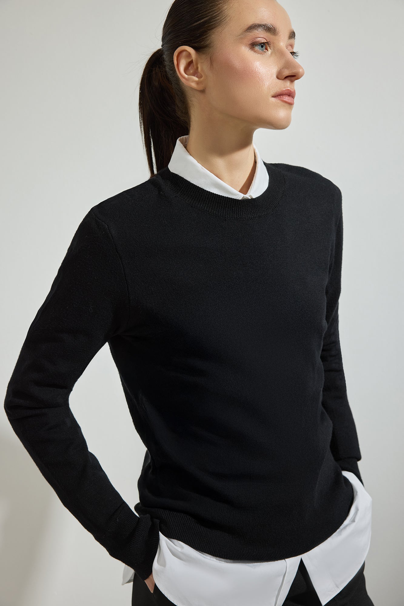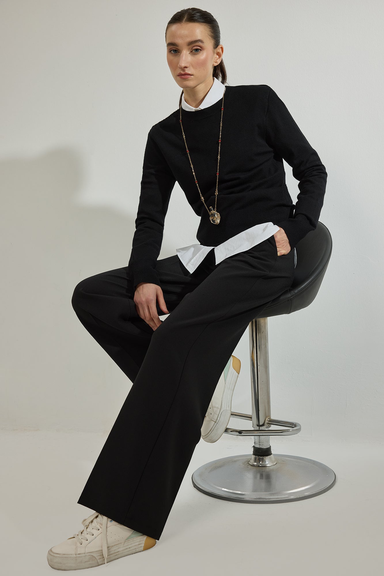 Bisiklet yaka. Uzun kollu. Ribana manşet ve etek ucu detaylı. Basıc triko kazak.