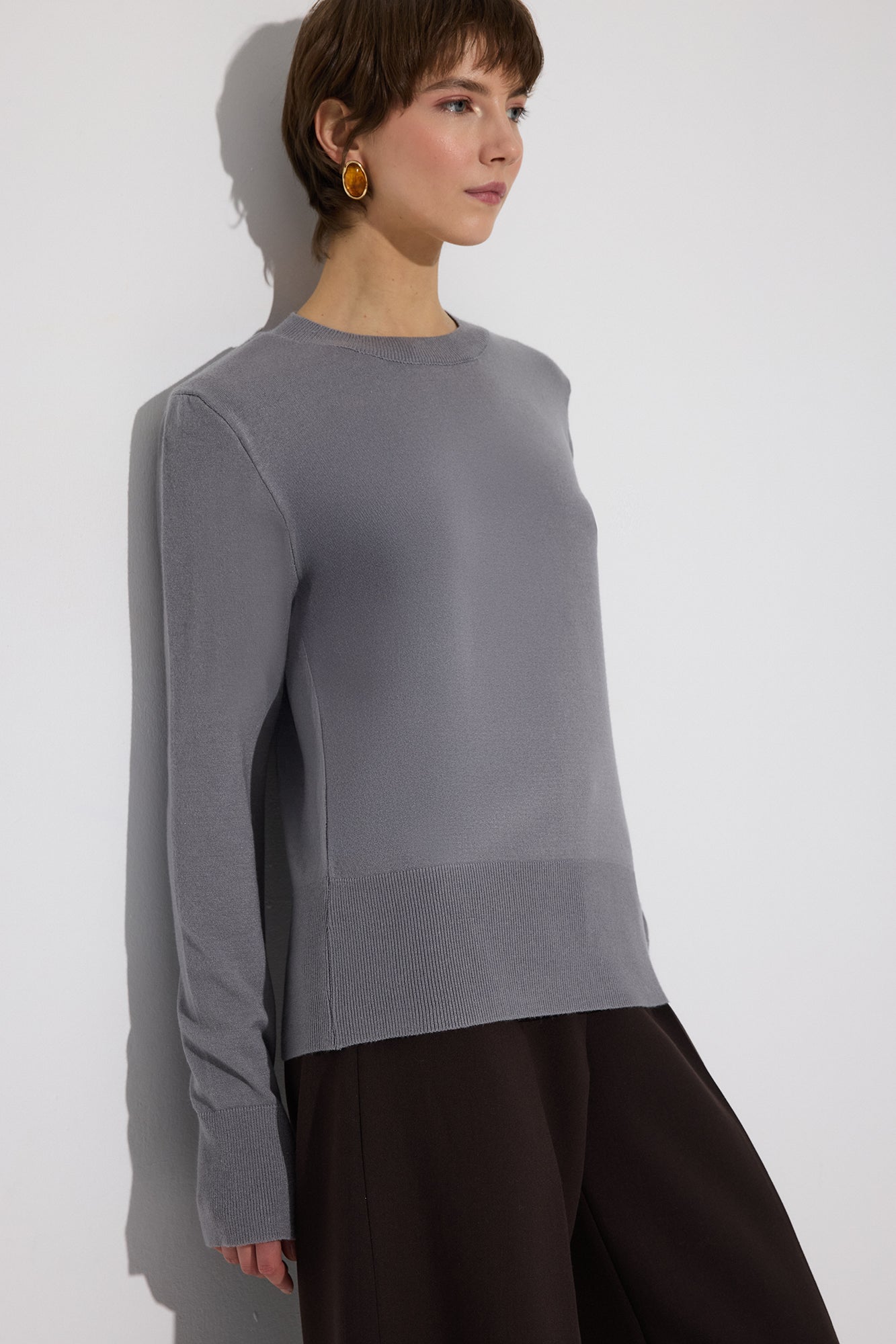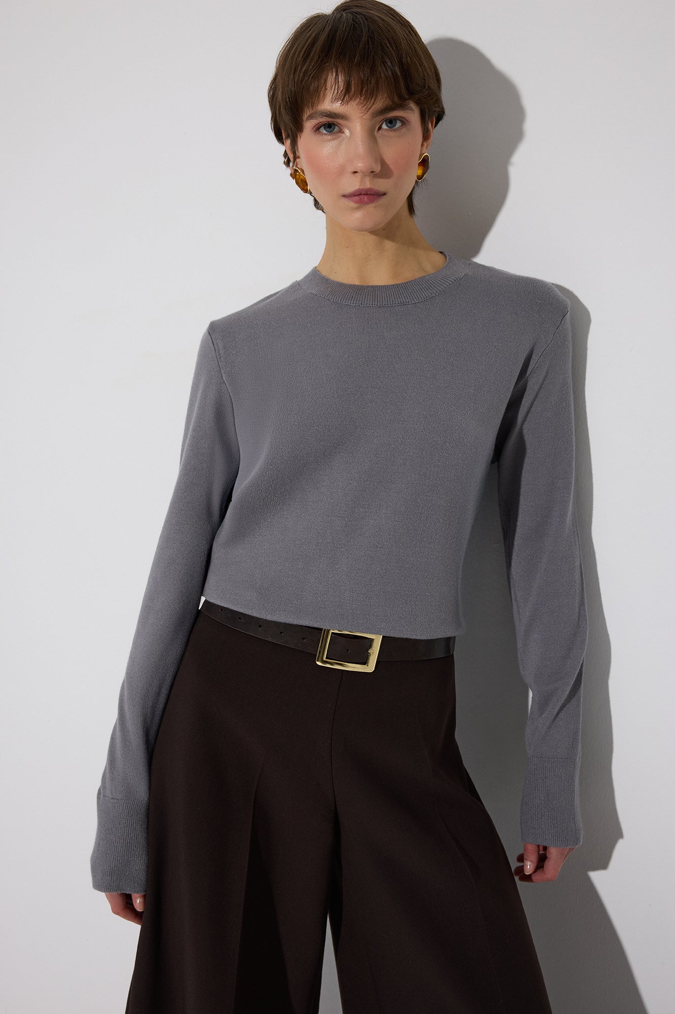Bisiklet yaka. Uzun kollu. Ribana manşet ve etek ucu detaylı. Basıc triko kazak.