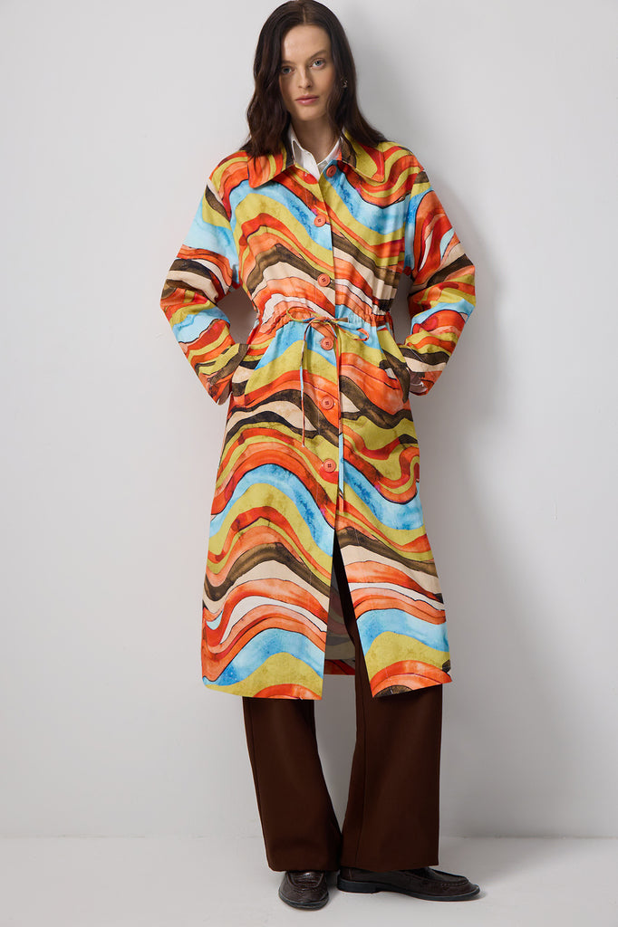 BELİ BÜZGÜLÜ ABSTRACT DESENLİ TRENÇKOT