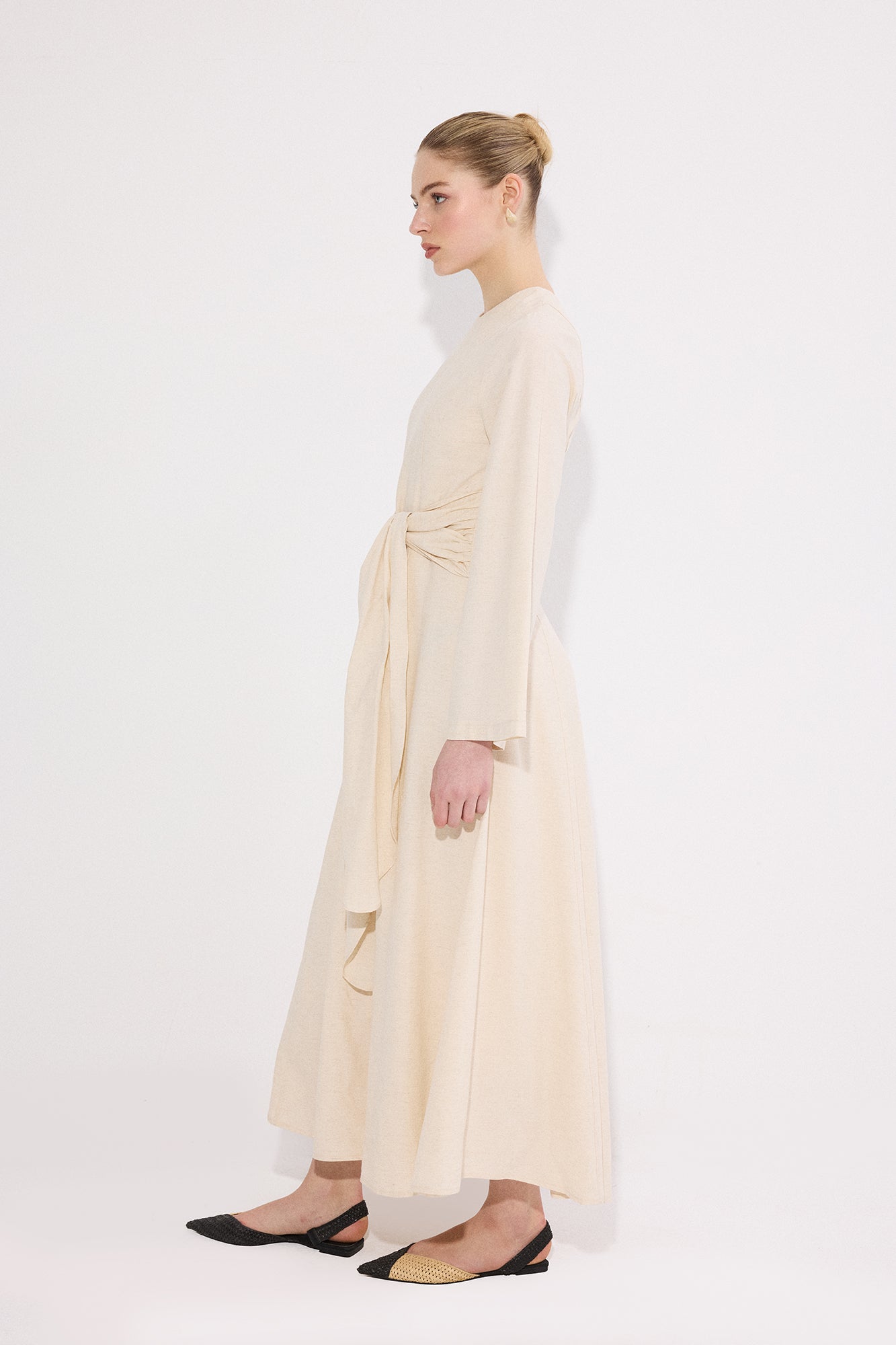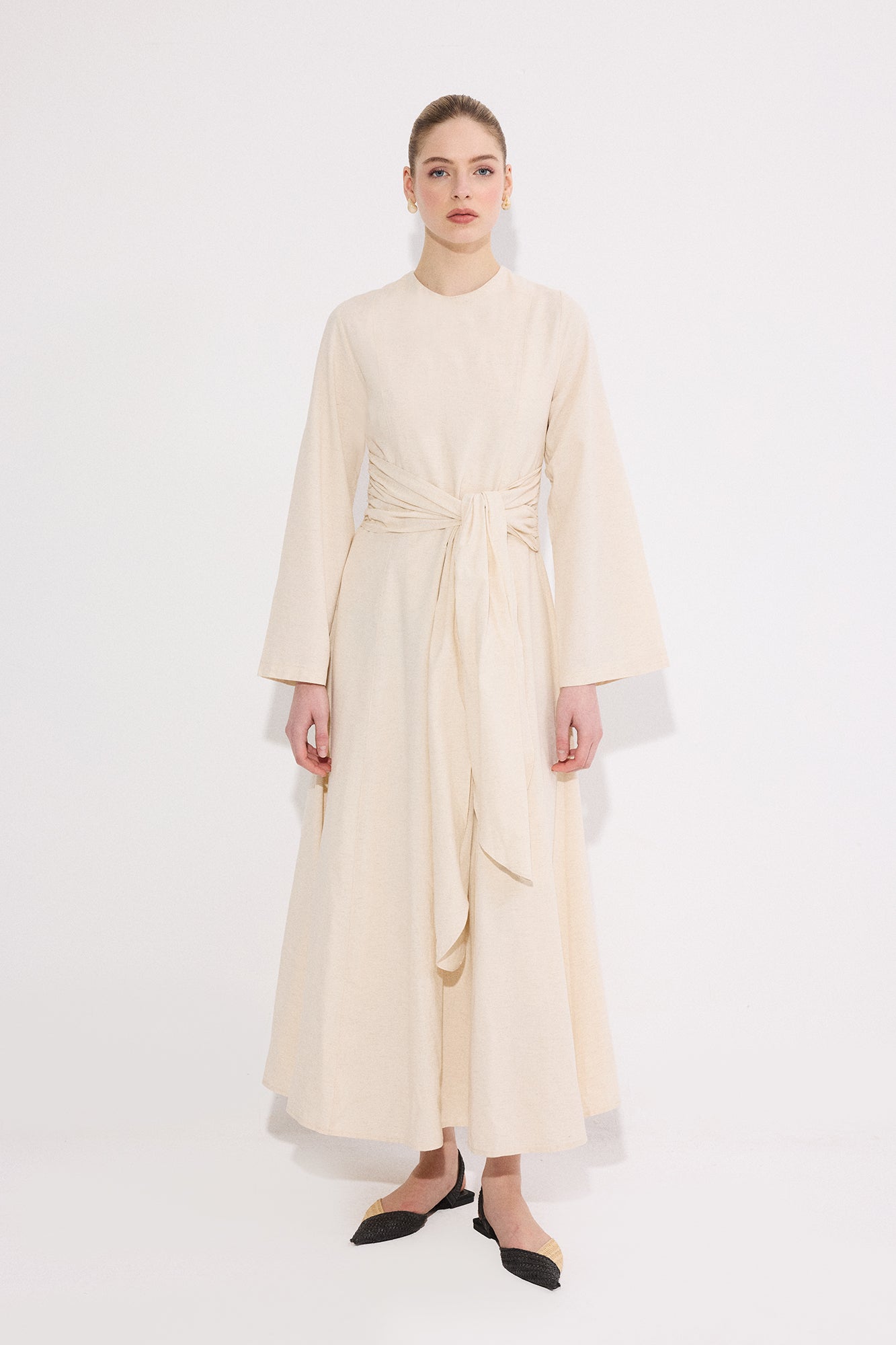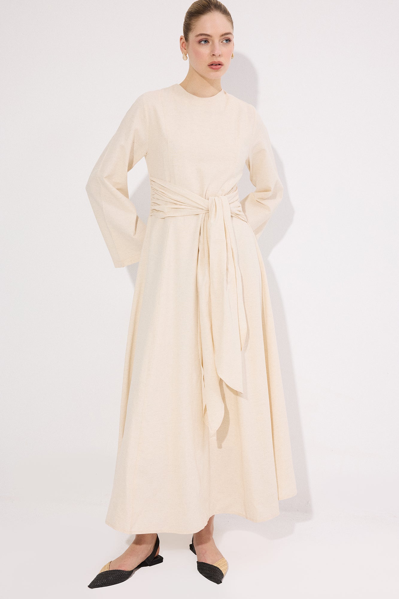 BELİ KEMERLİ KETEN ELBİSE