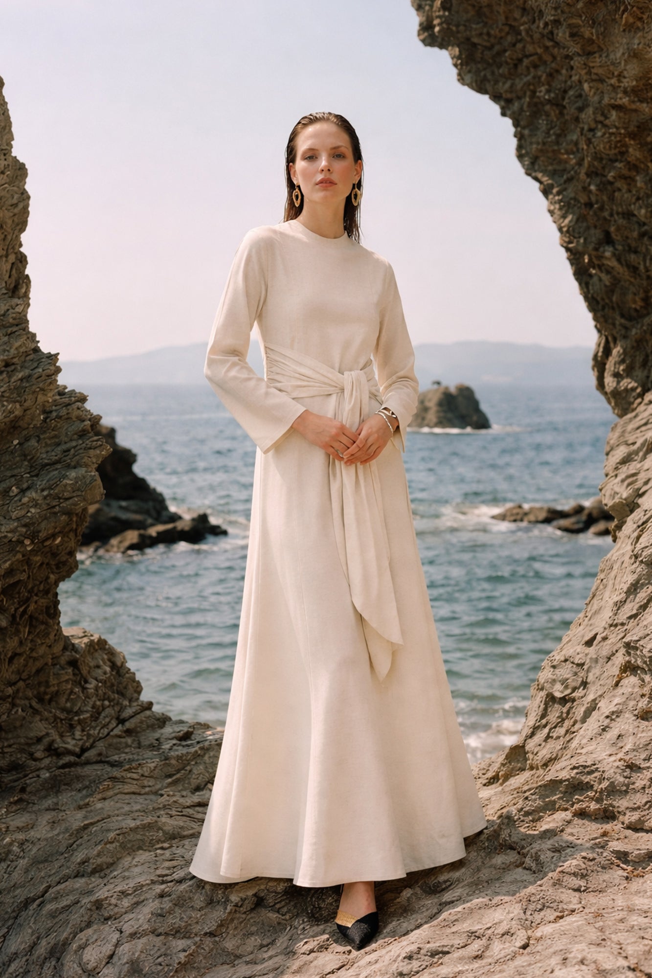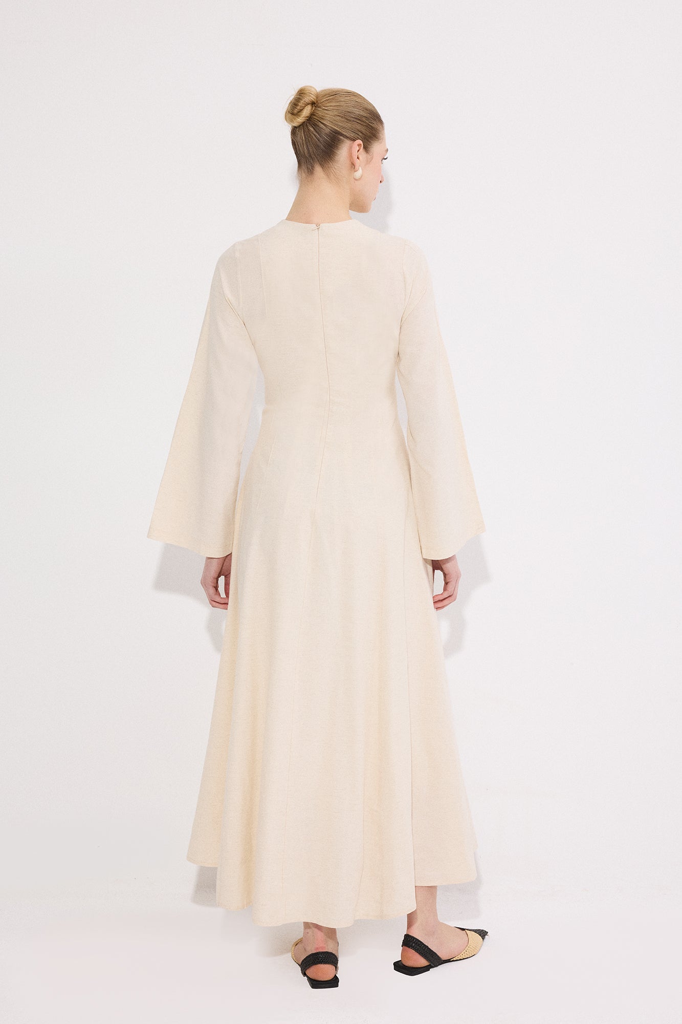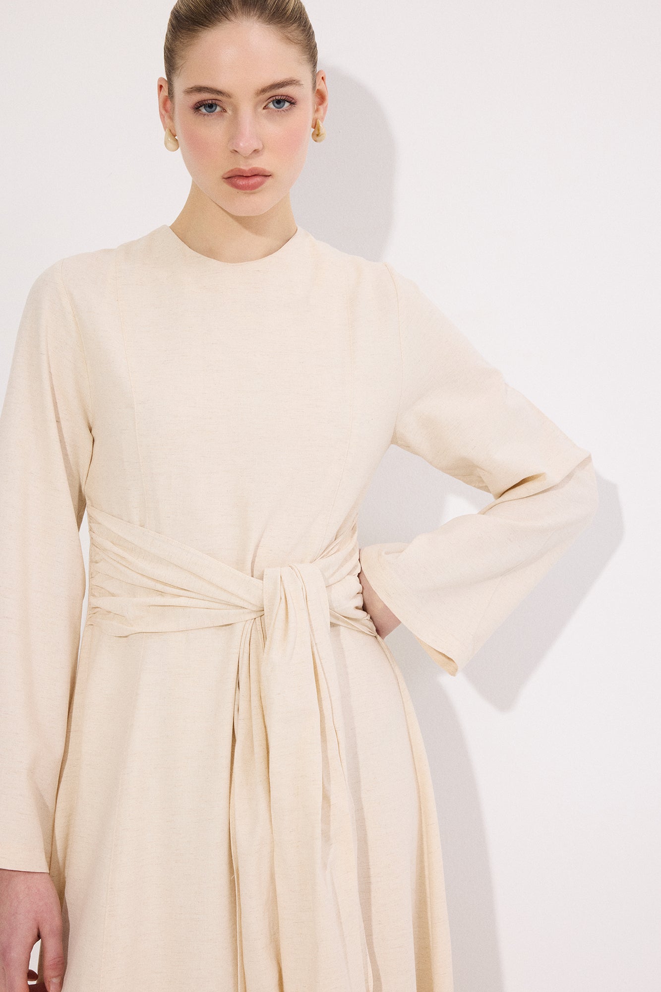 BELİ KEMERLİ KETEN ELBİSE