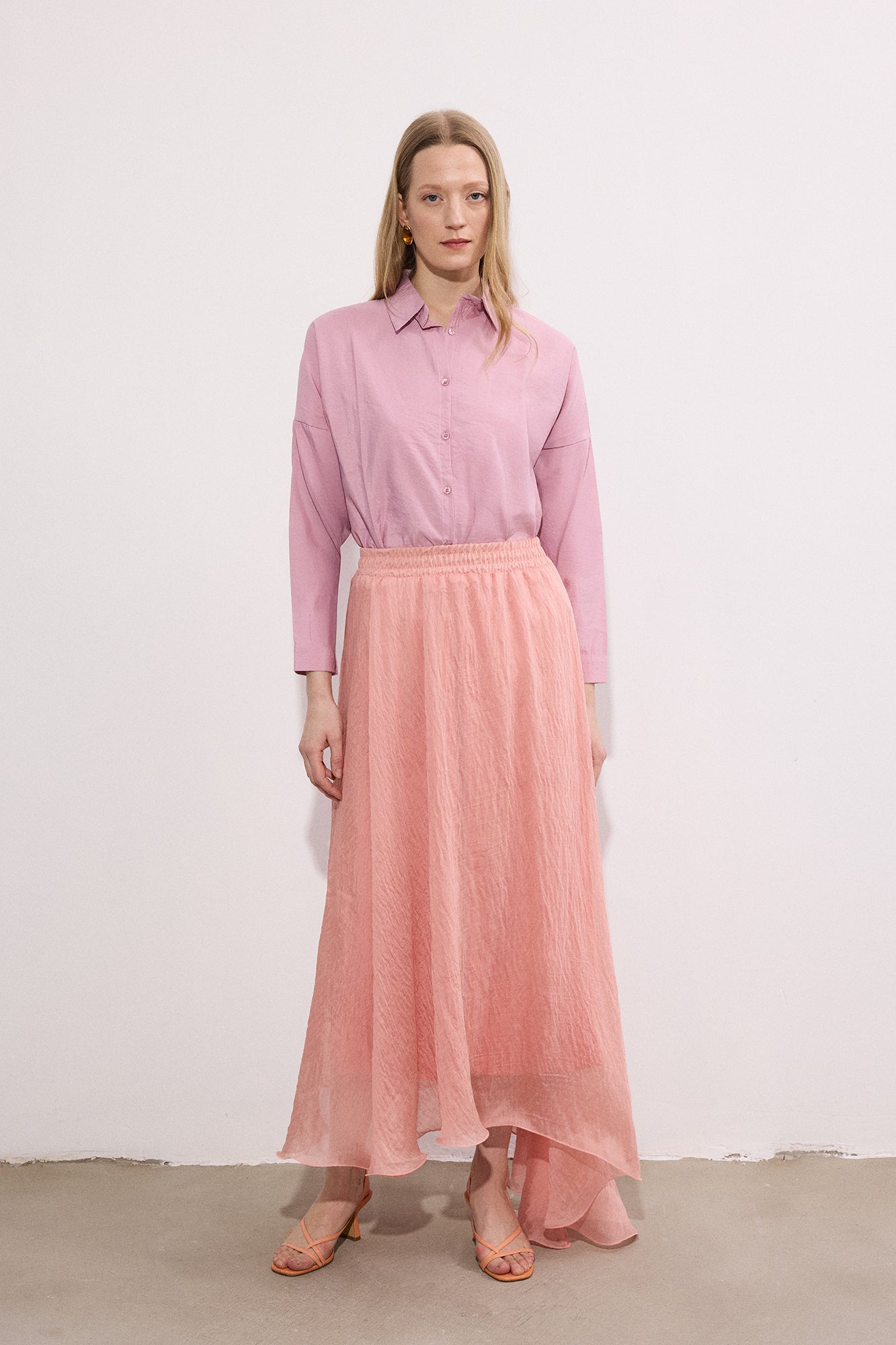 Büzgülü bel. A kesim. Dökümlü. Maxi boy.