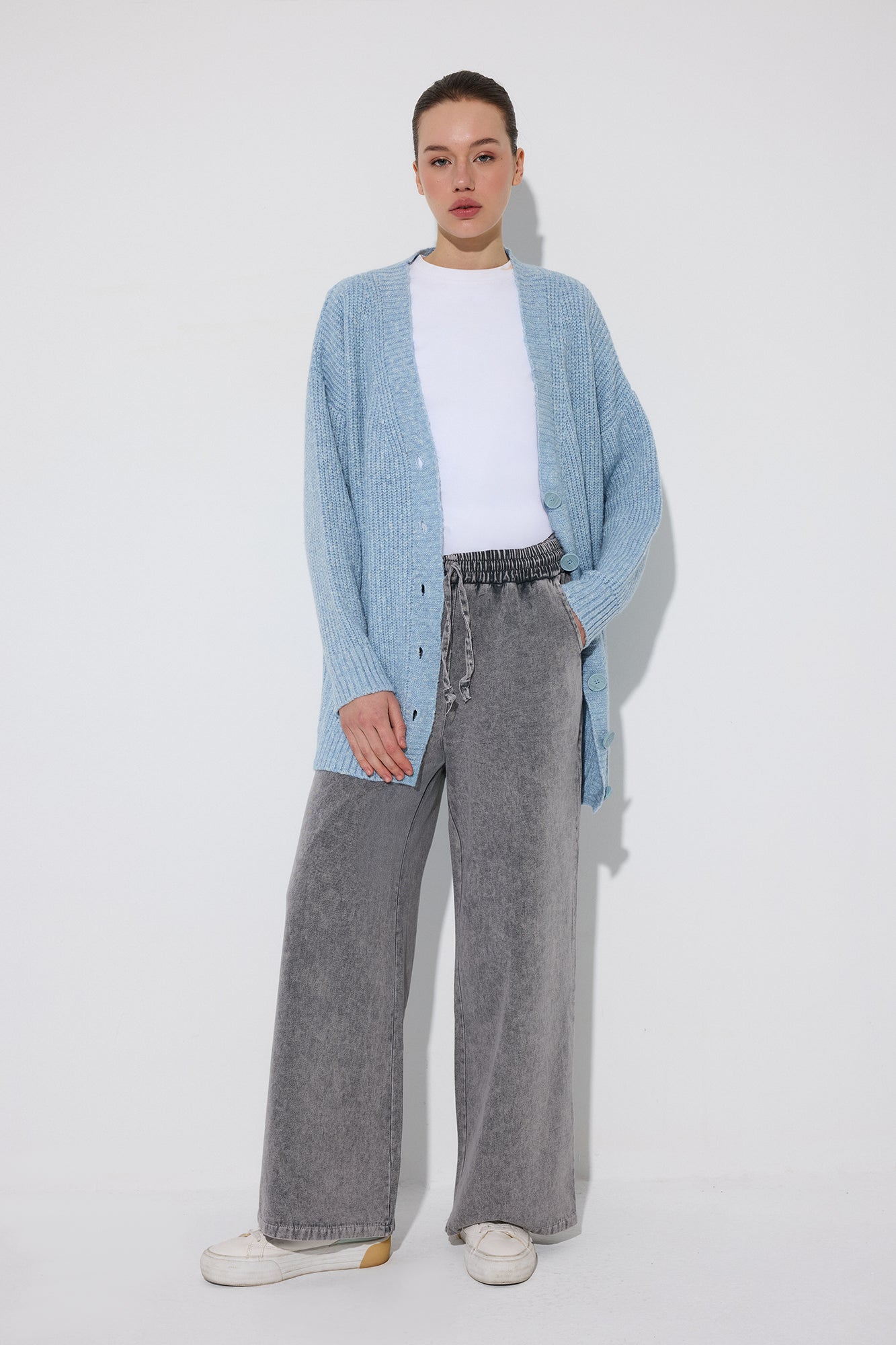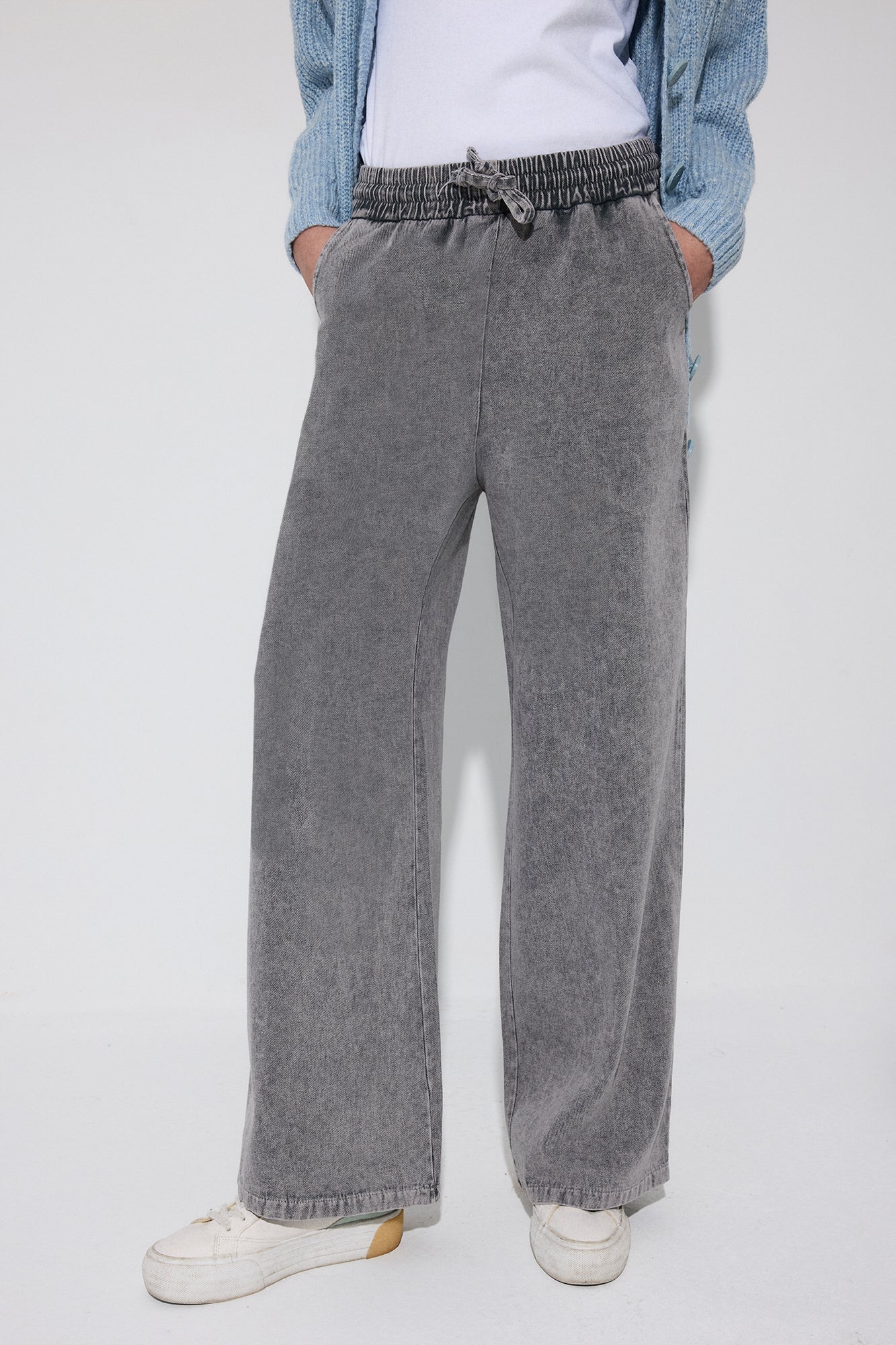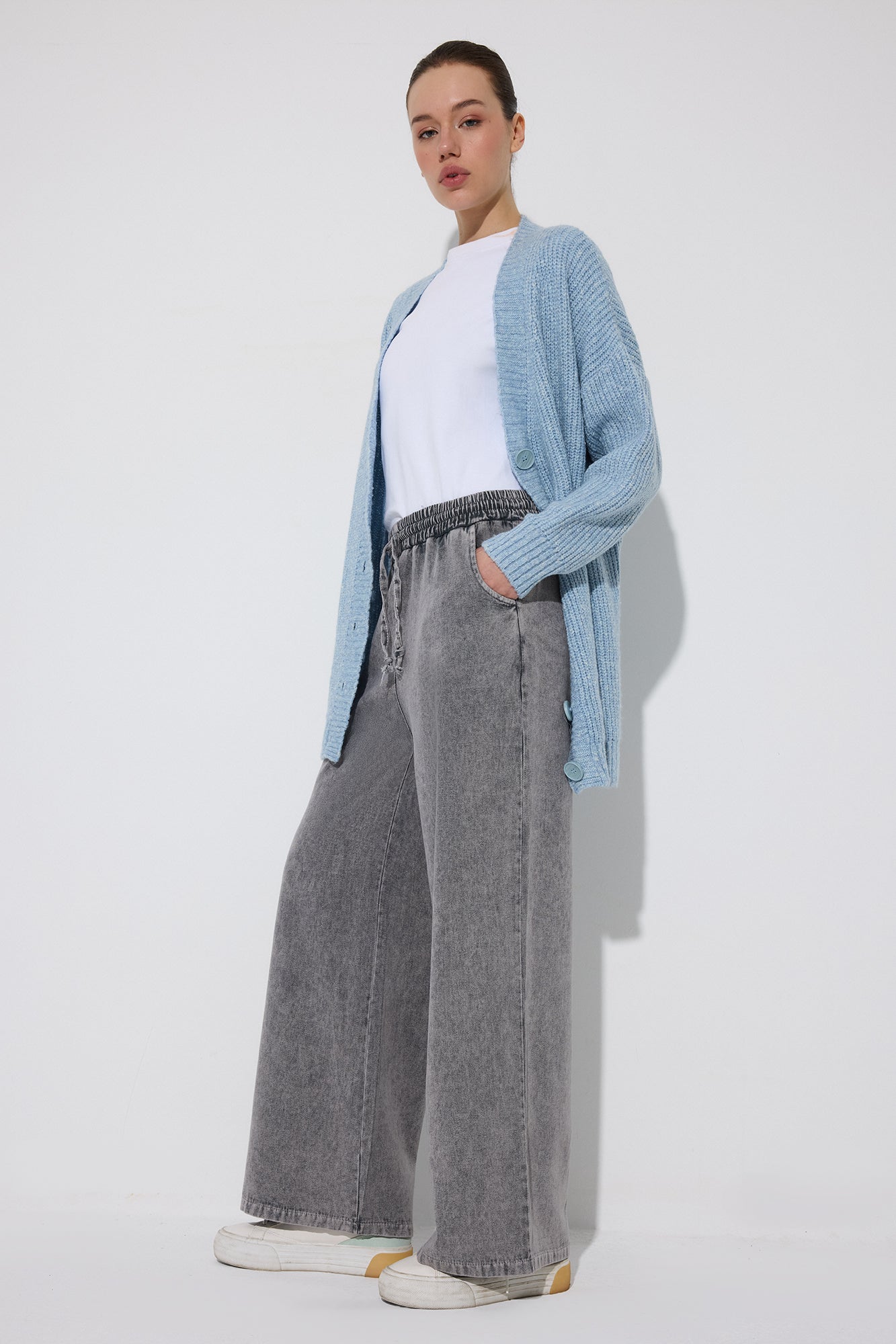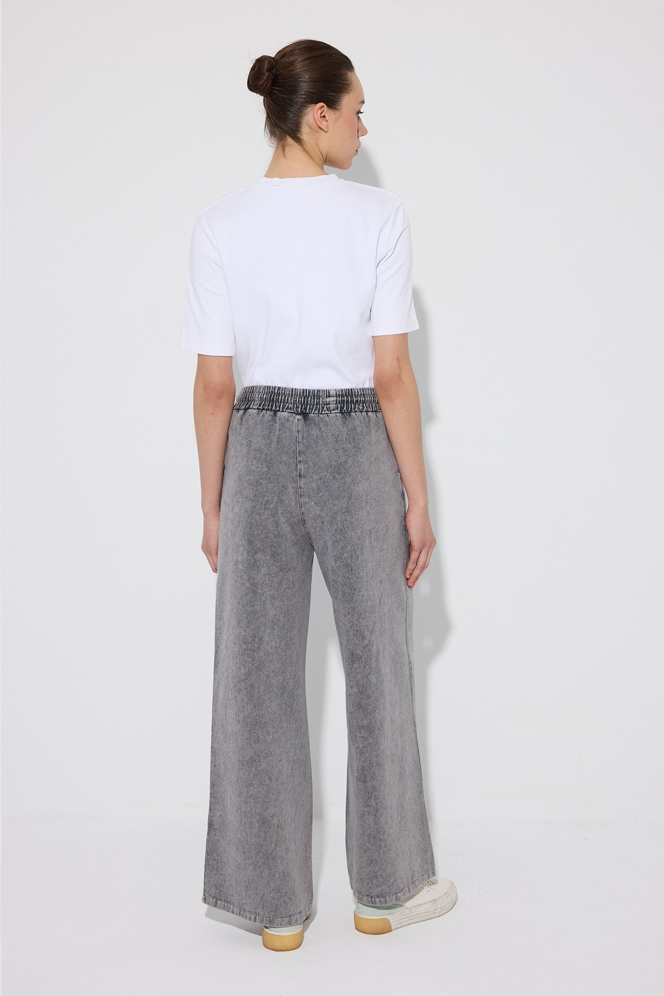 BELİ LASTİKLİ GENİŞ PAÇA DENİM PANTOLON