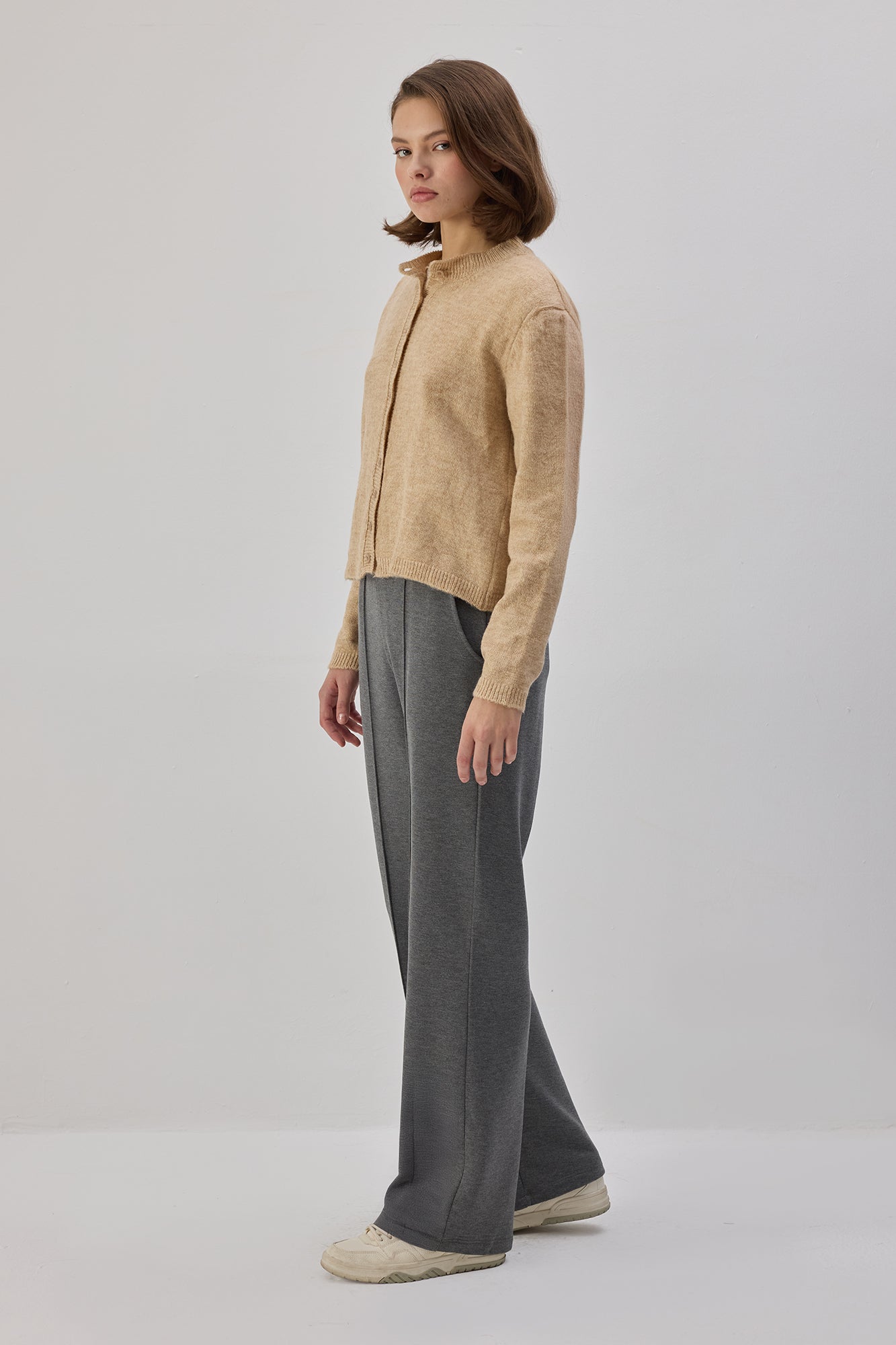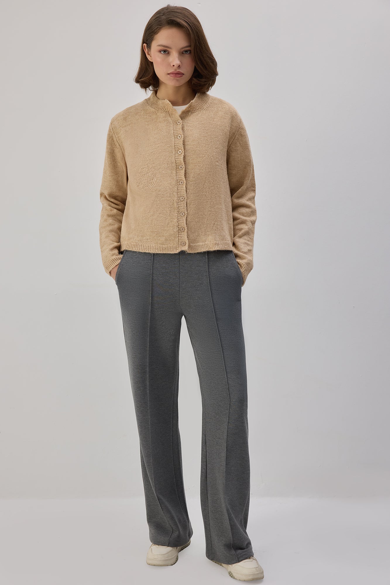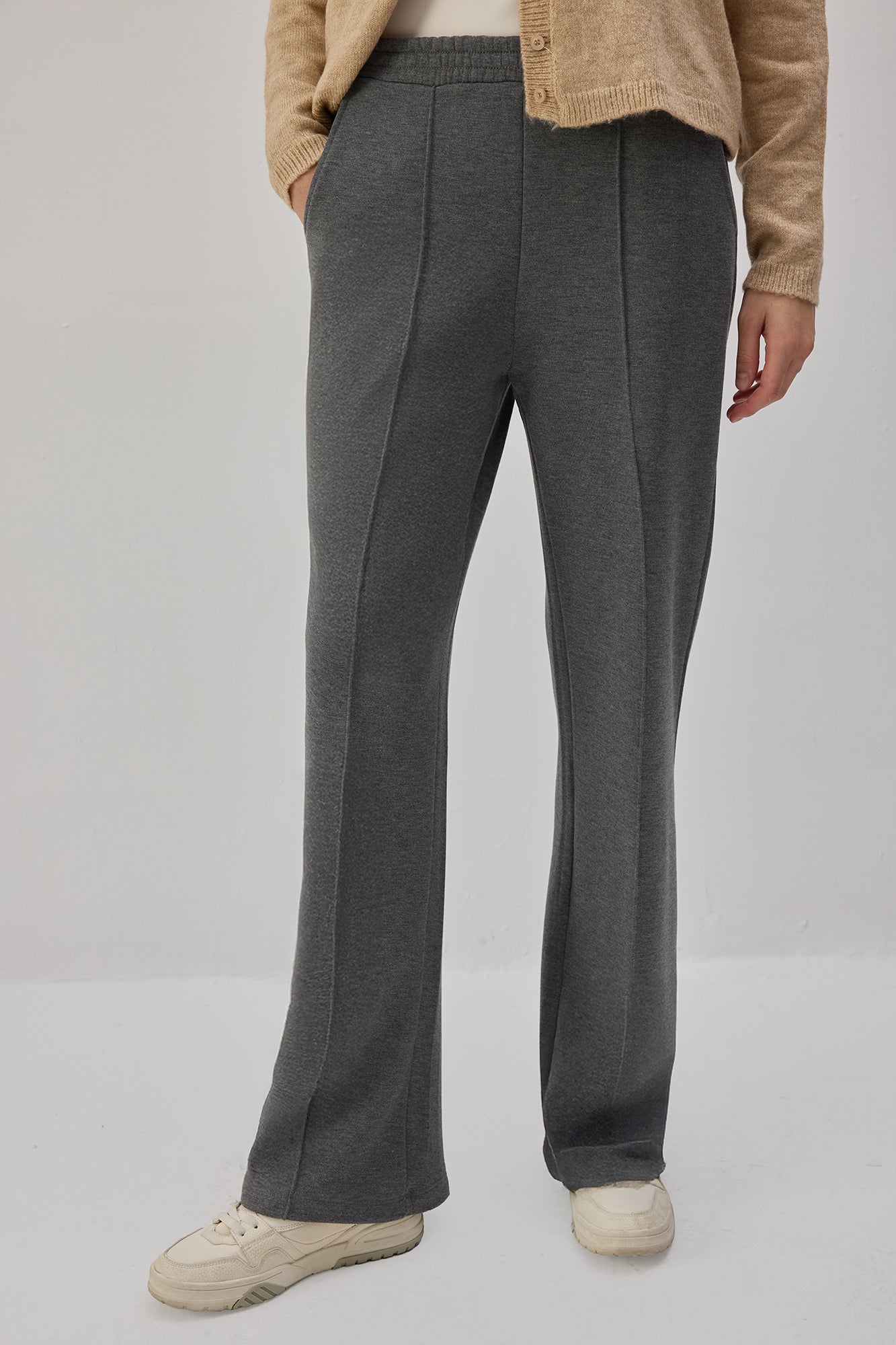 Lastikli bel. Yan cepli. Nervürlü. Örme eşofman.