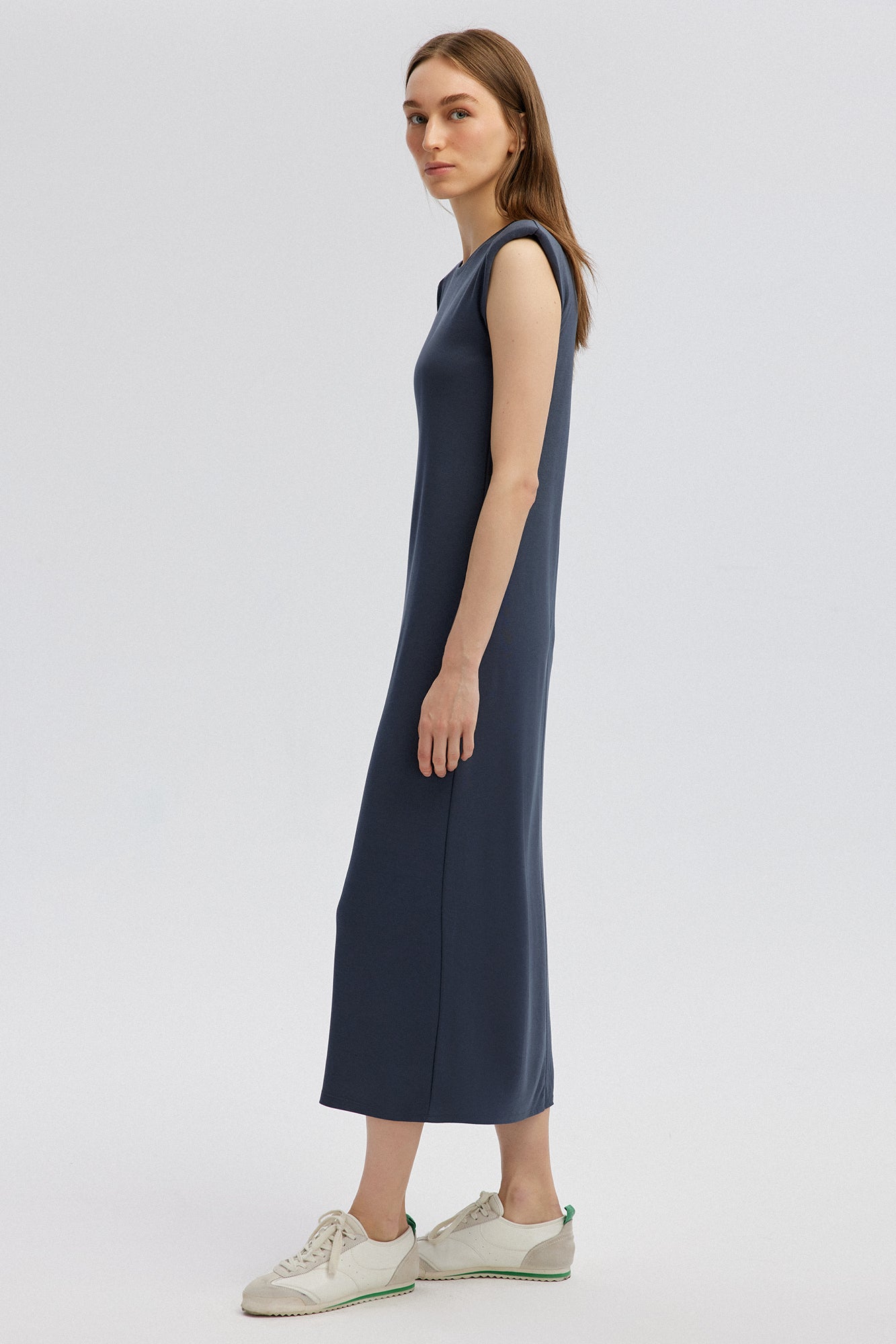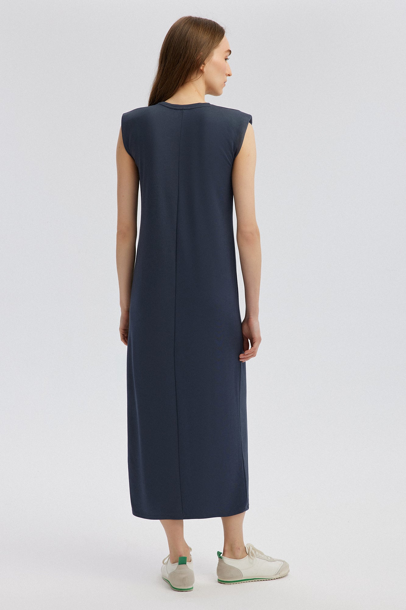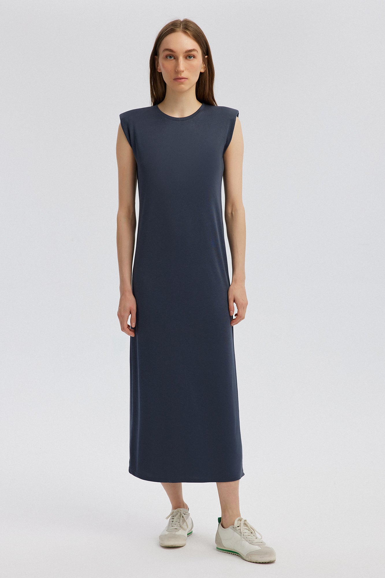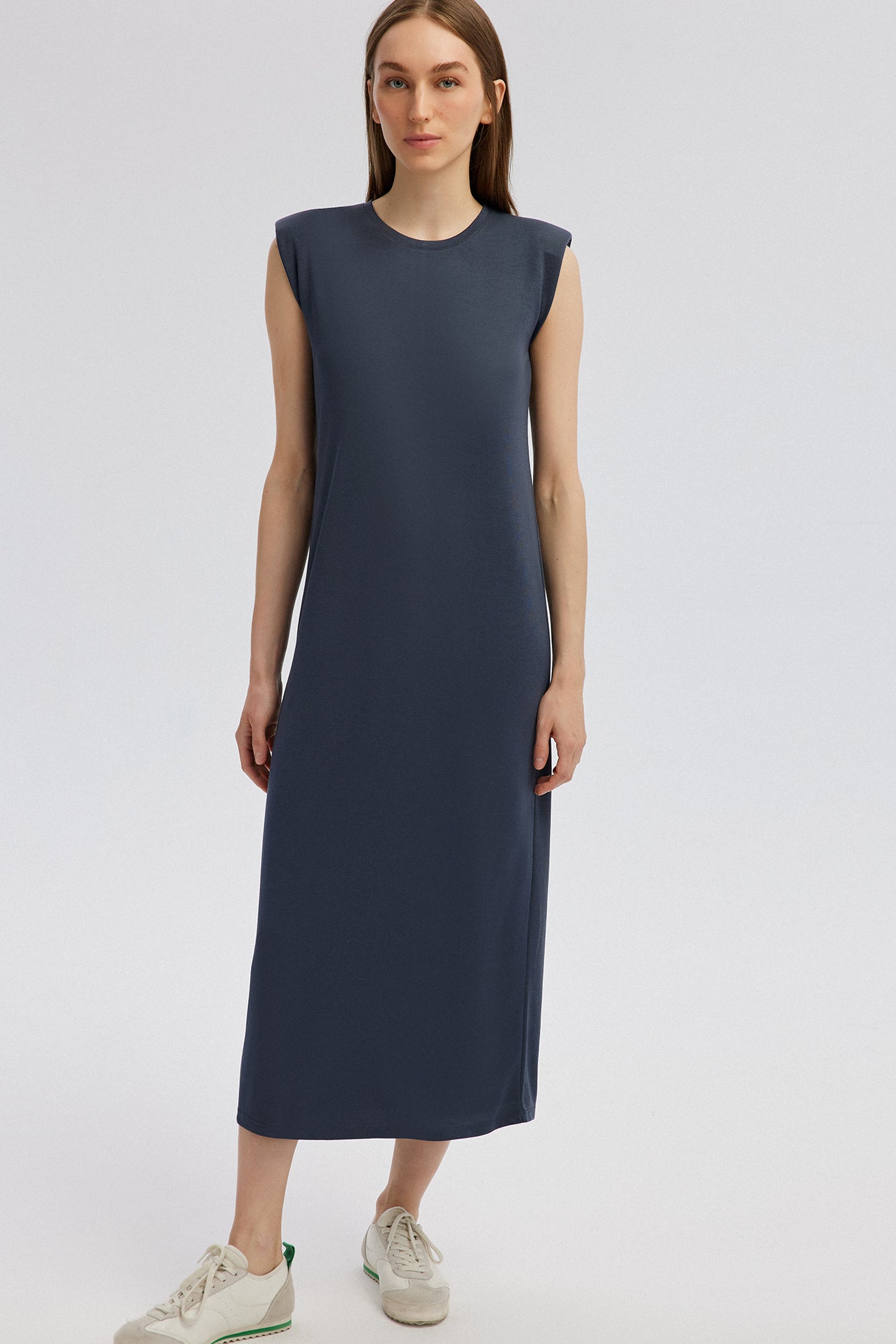 Bisiklet yaka. Kolsuz. Vatkalı. Basic elbise.