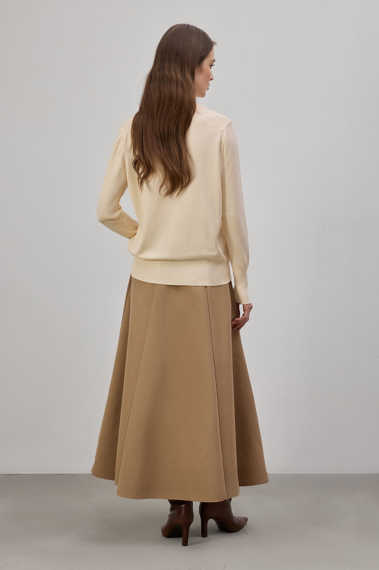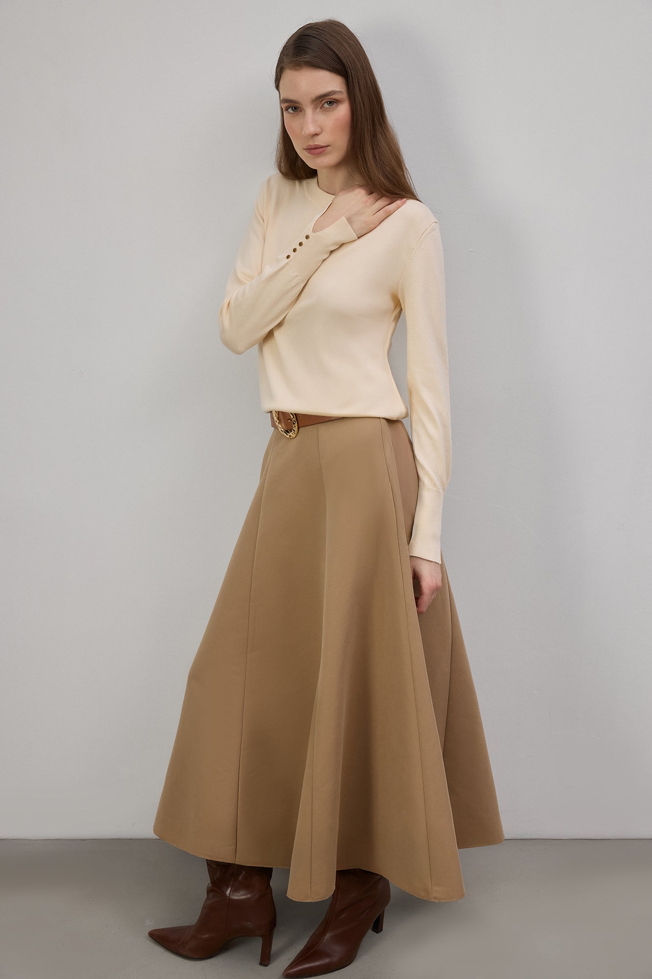 Bisiklet yaka. Uzun kollu. Manşet detaylı. Triko kazak.