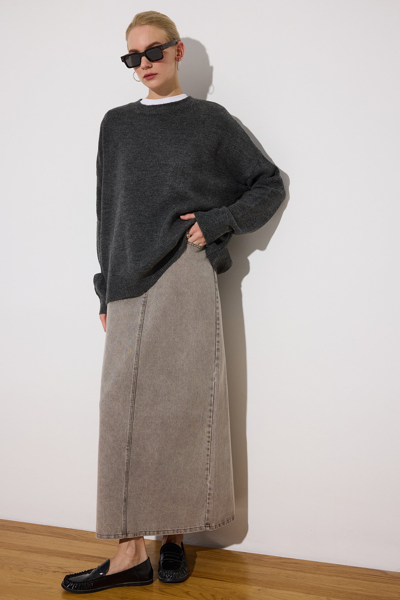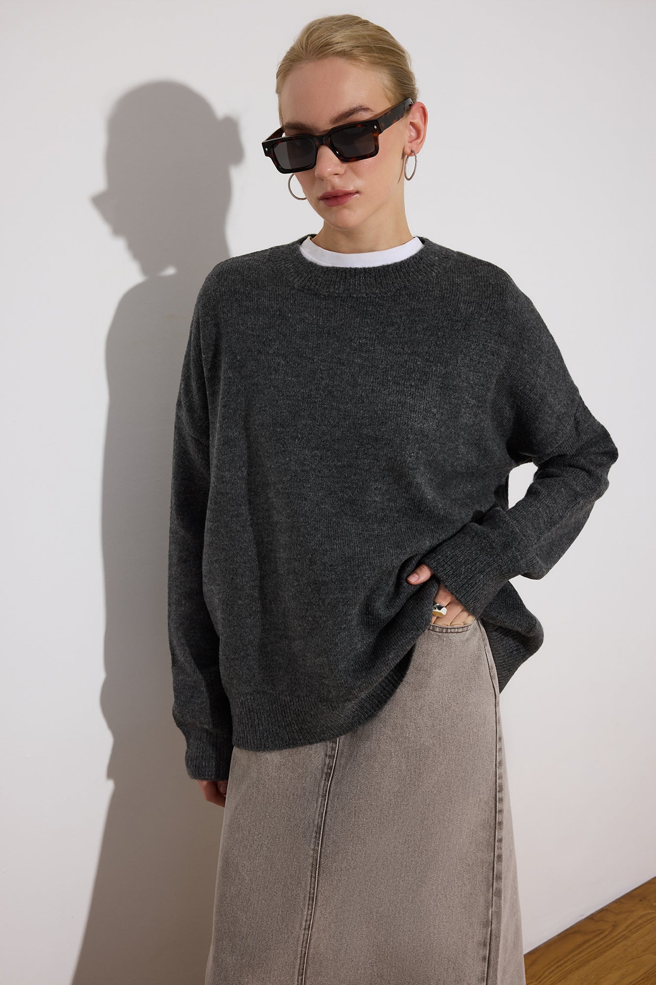 Sıcaklık düştüğünde bile konforlu kalmanız için tasarlanan bu yumuşak ve hafif triko kazak, gün boyu sıcak tutan yapısıyla gardırobunuzun zamansız parçalarından biri olur. Rahat kalıbı ve esnek dokusu sayesinde hareket özgürlüğü sunar.