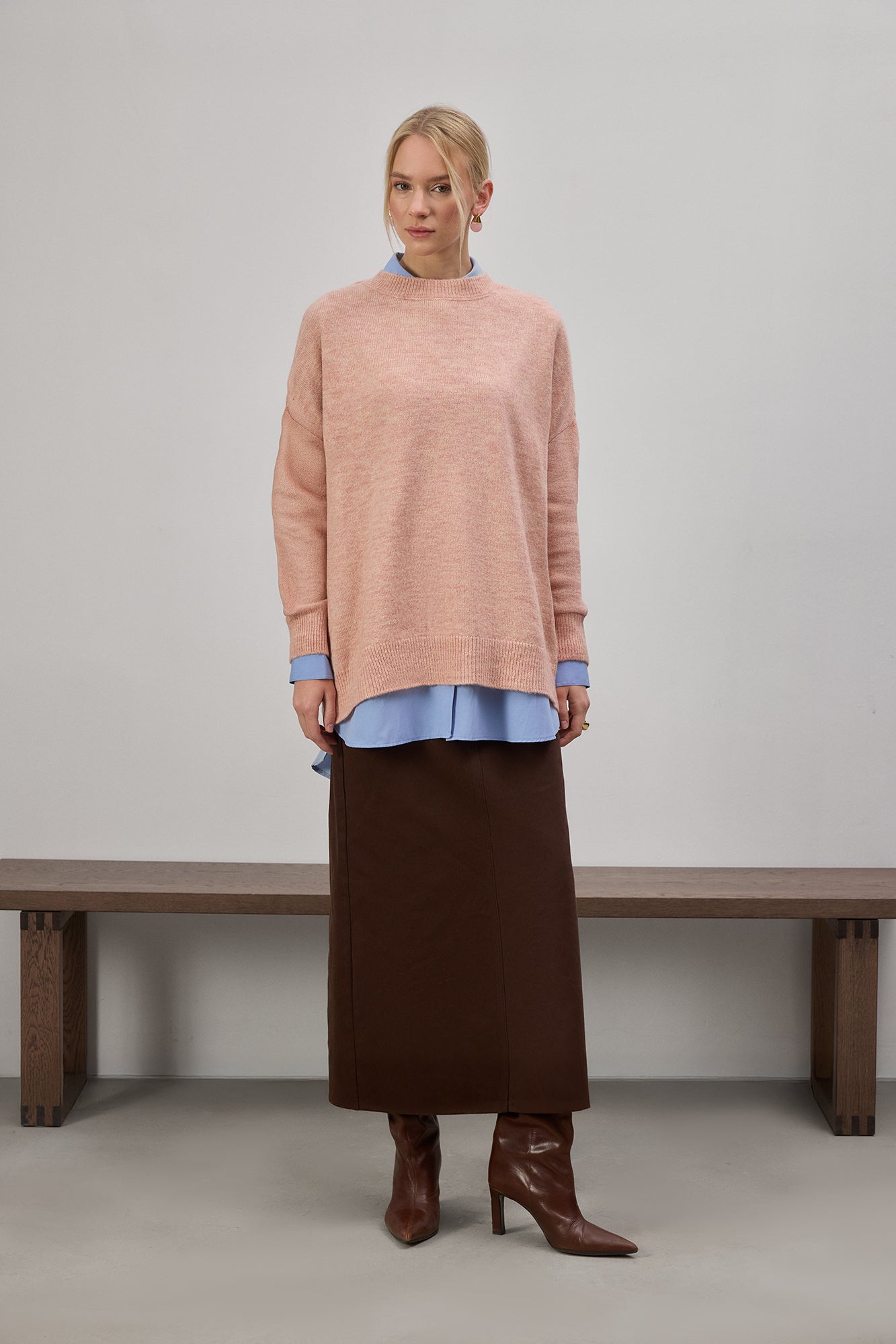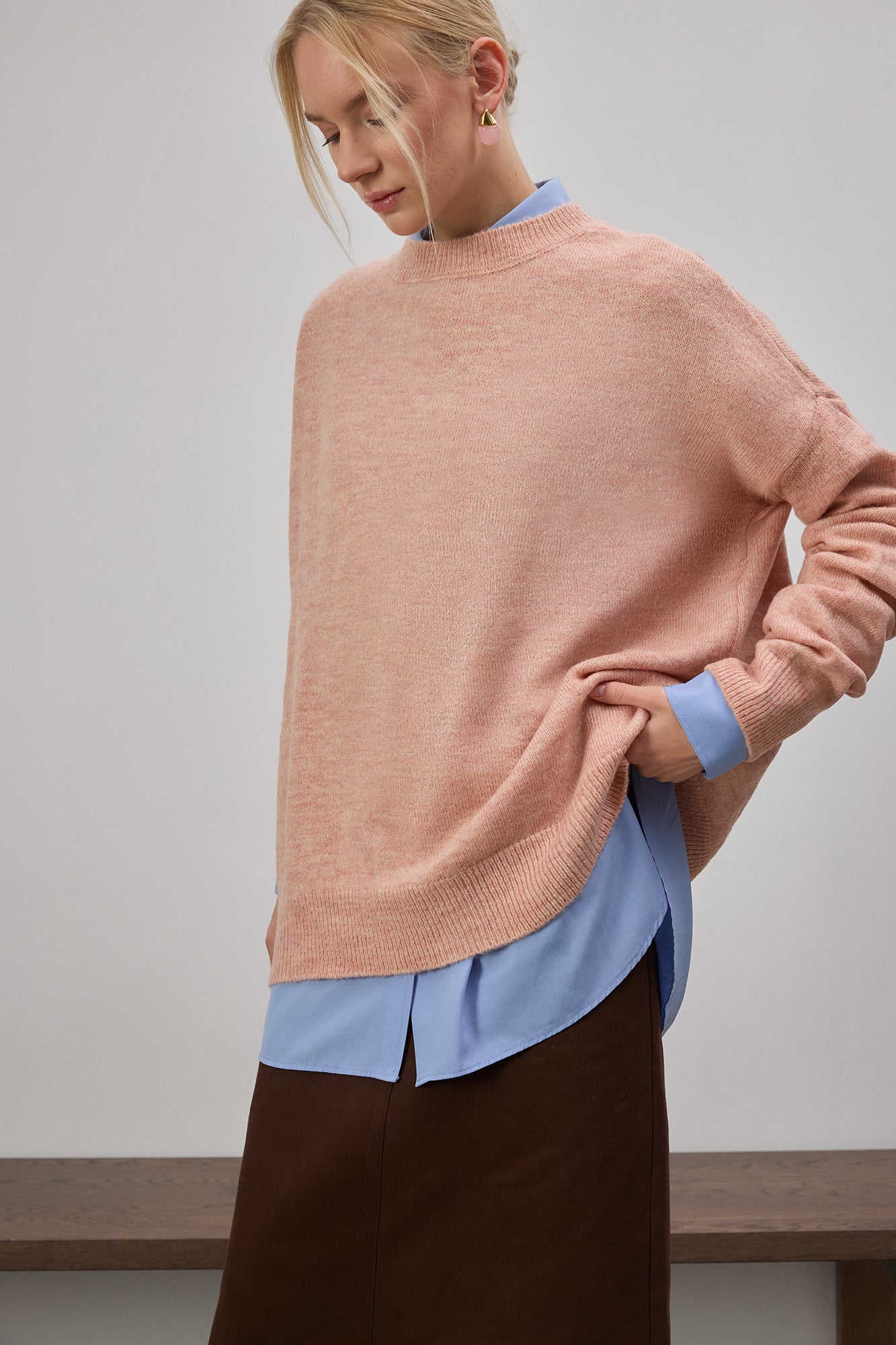Sıcaklık düştüğünde bile konforlu kalmanız için tasarlanan bu yumuşak ve hafif triko kazak, gün boyu sıcak tutan yapısıyla gardırobunuzun zamansız parçalarından biri olur. Rahat kalıbı ve esnek dokusu sayesinde hareket özgürlüğü sunar.