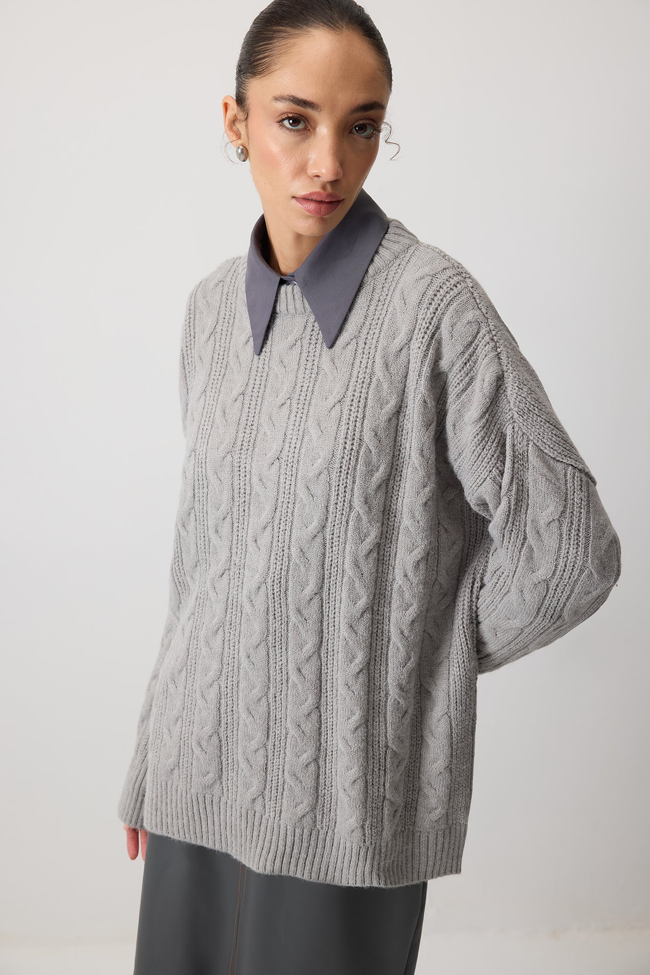ÖRGÜ DETAYLI OVERSİZE KAZAK