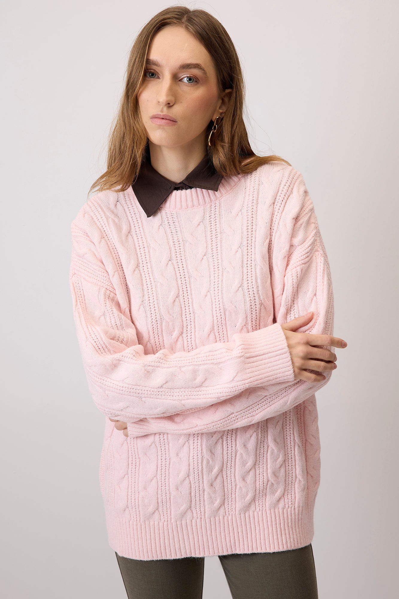 ÖRGÜ DETAYLI OVERSİZE KAZAK