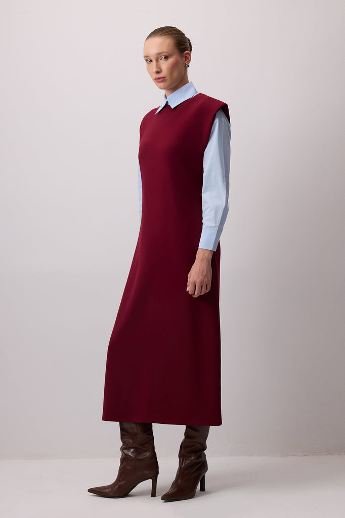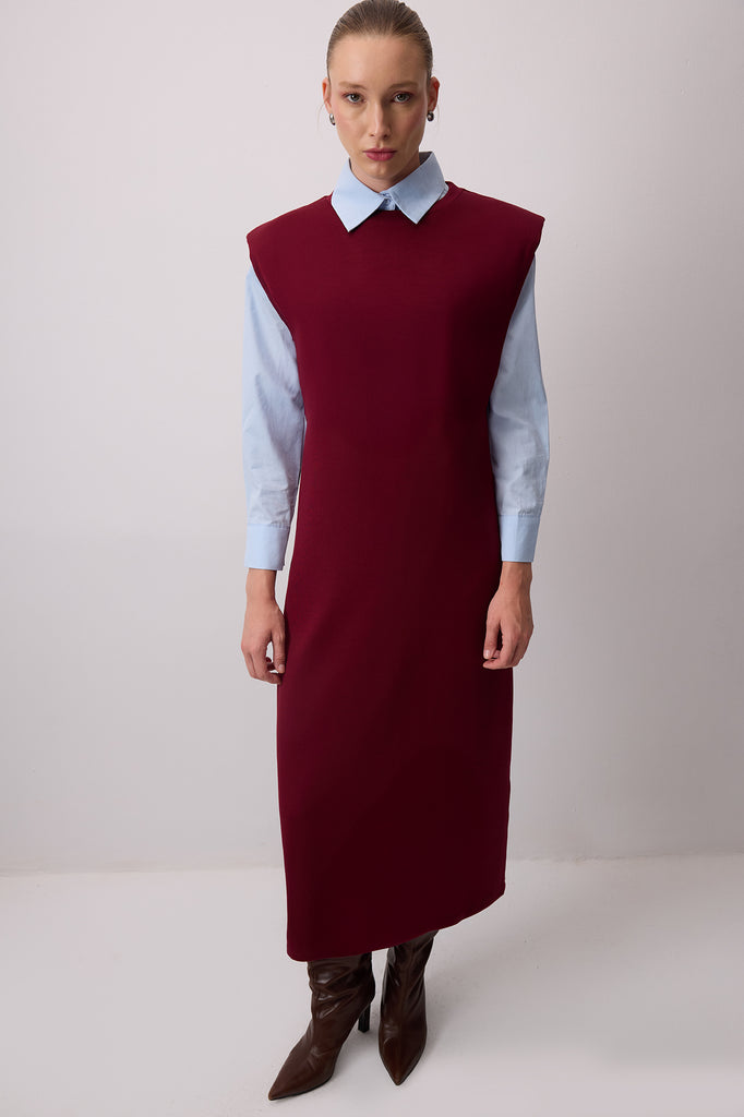 Bisiklet yaka. Kolsuz. Vatkalı. Basic elbise.