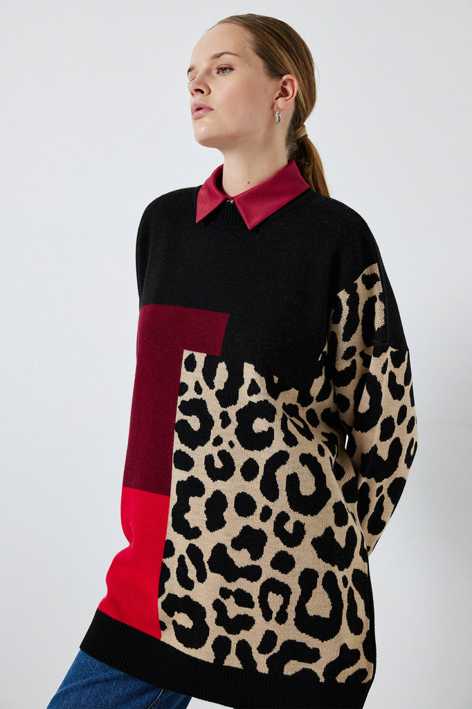 LEOPAR BLOK DESENLİ TRİKO TUNİK