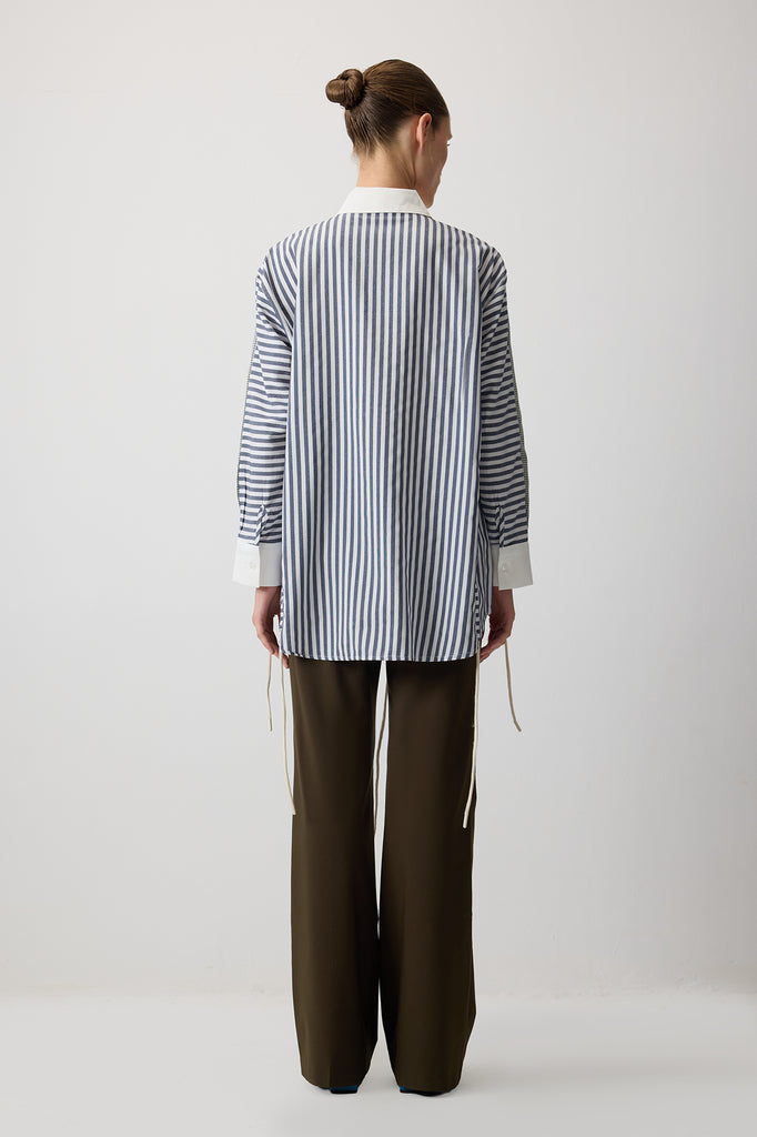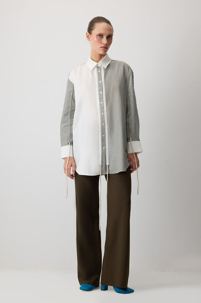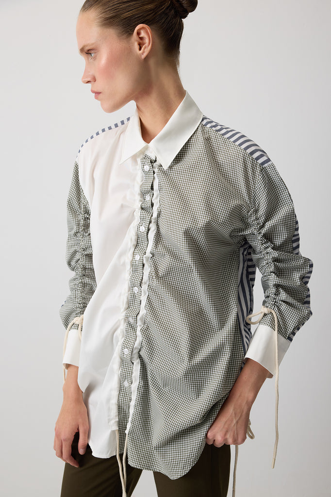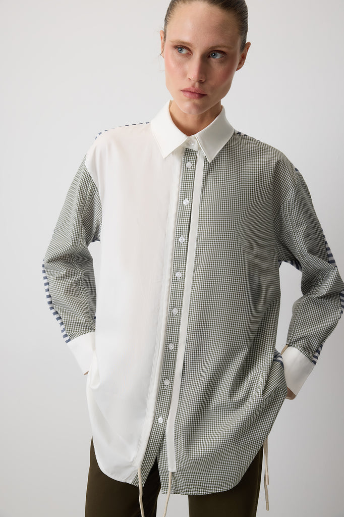BLOK RENKLİ BÜZGÜLÜ POPLİN GÖMLEK