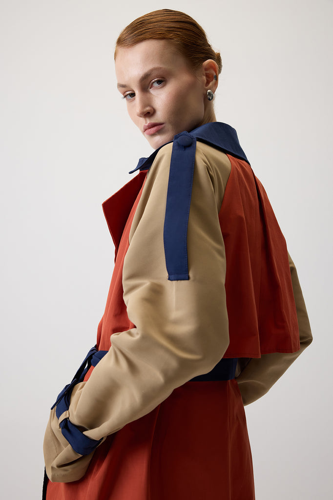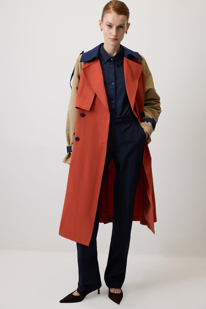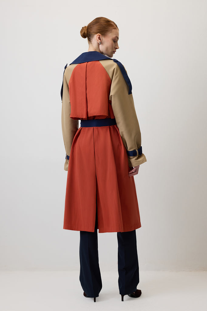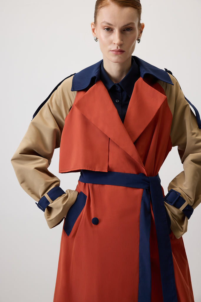 BLOK RENKLİ KEMERLİ TRENÇKOT