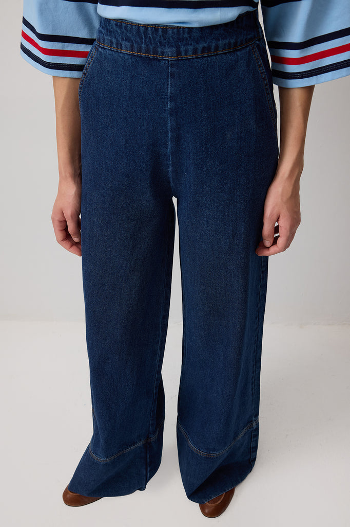 Yüksek bel. Yandan fermuar kapama. Bol paça.