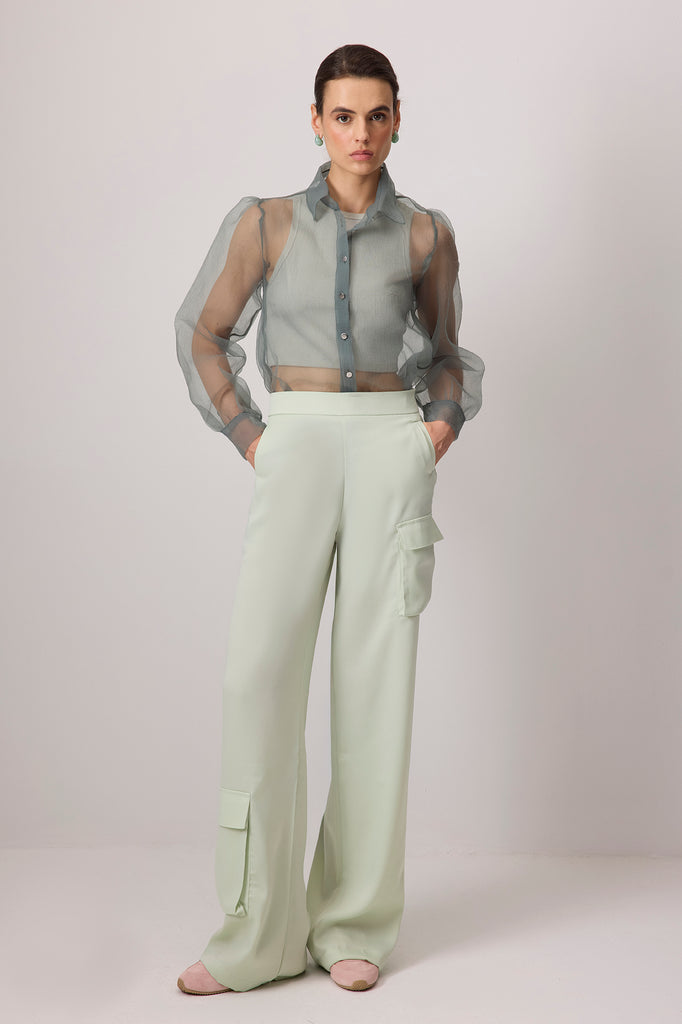 Uzun boy. Yandan gizli fermuar kapama. Arka elastik bel. İki yan cep. Rahat kesim. Cep detaylı.