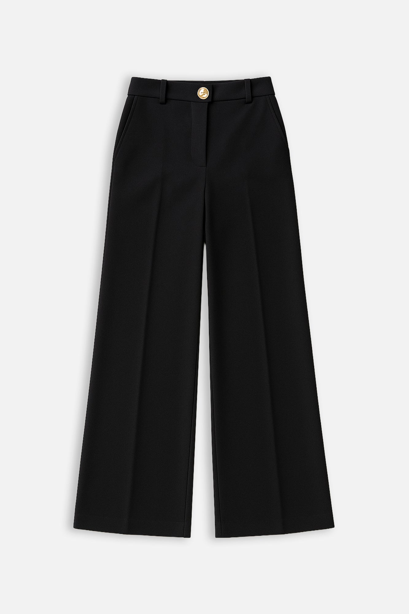 Yün dokulu bol paça pantolon. Yüksek bel. Gold düğme detaylı. Cep detaylı.
