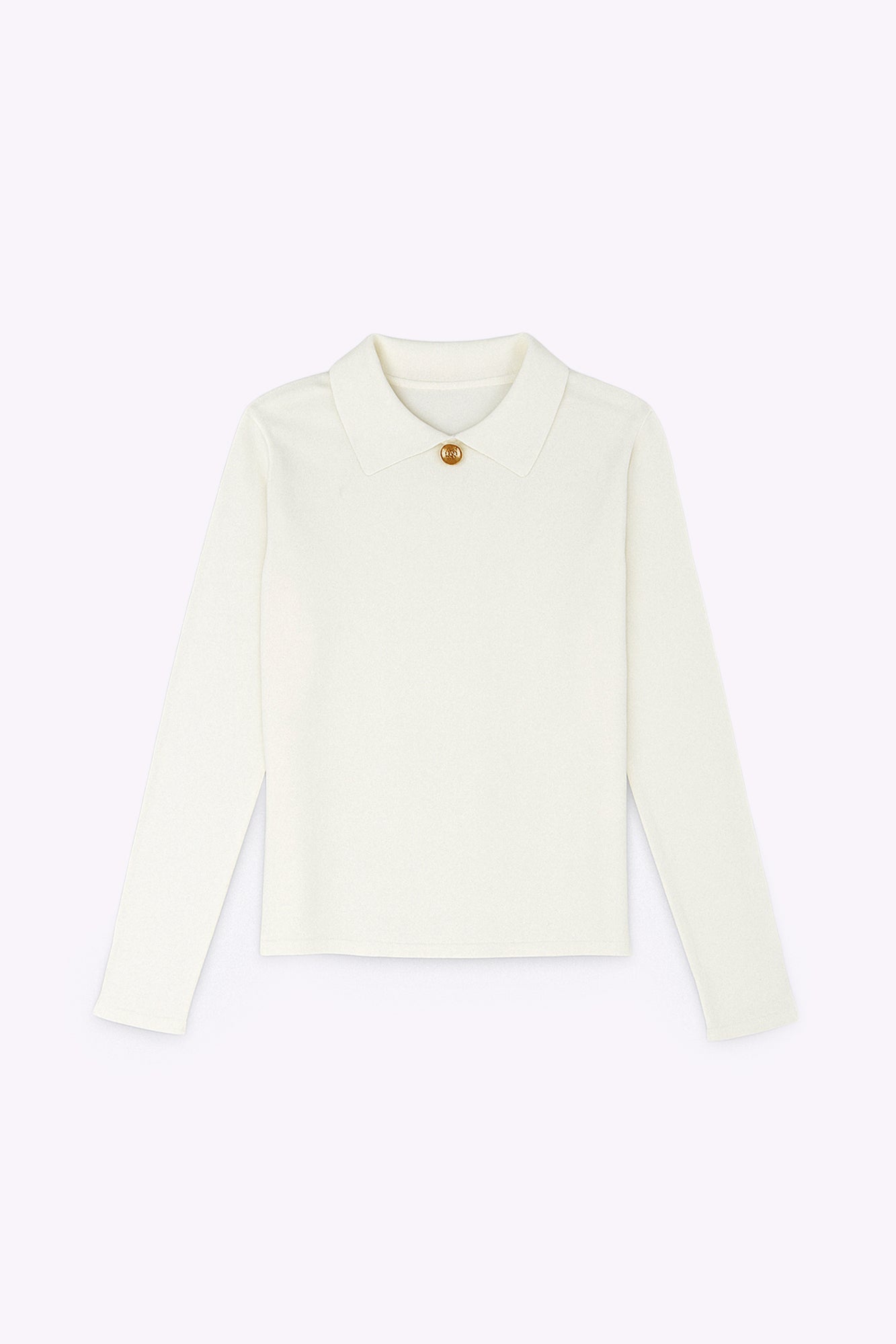 Broş detaylı. Yakalı. Uzun kollu triko bluz.