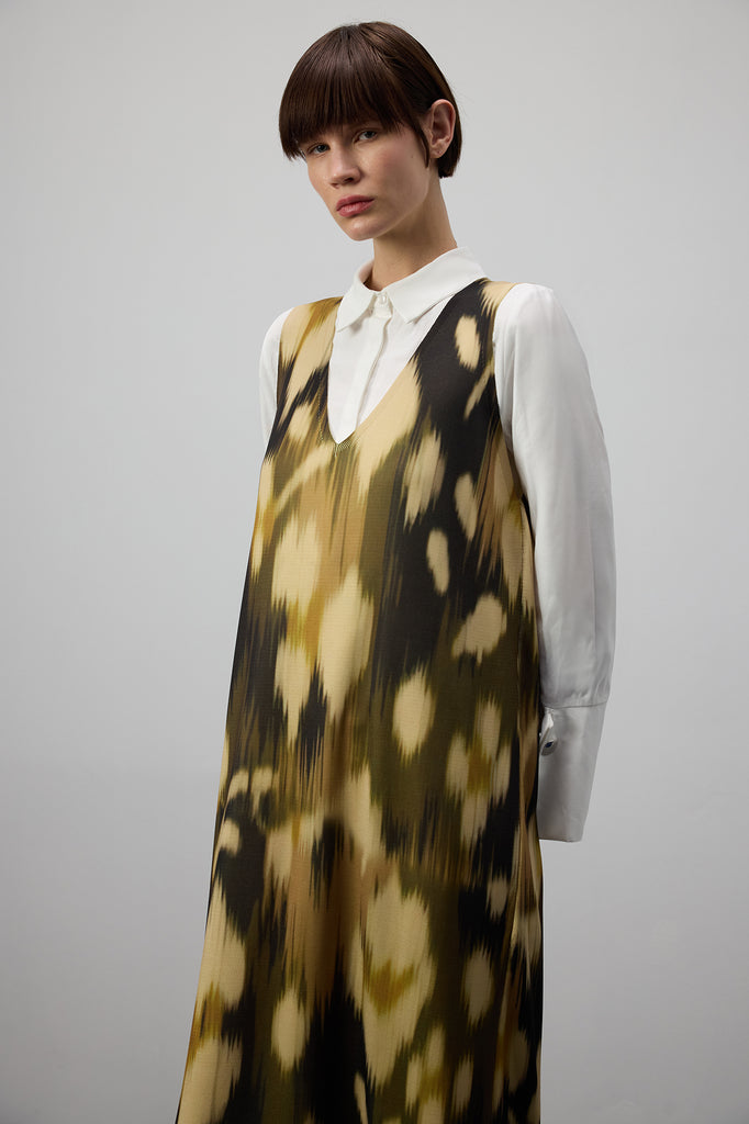 Klasik yaka. Uzun kollu ve manşetleri düğme kapamalı. Yama cep detaylı. Saten. Önden düğme kapamalı.