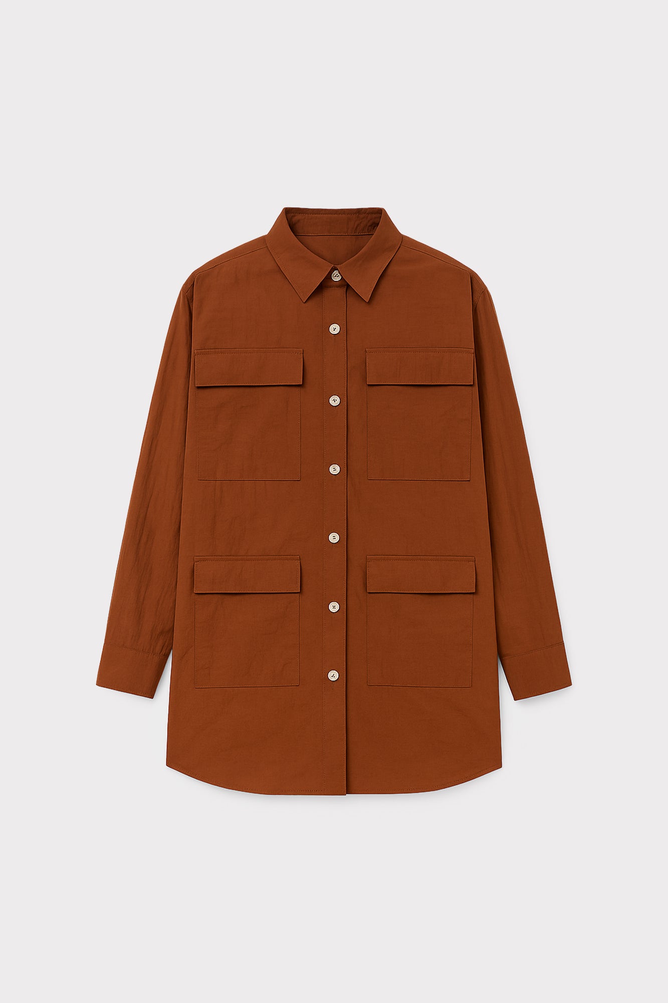 Klasik yaka. Uzun kollu ve manşetleri düğme kapamalı. Kapaklı cep detaylı. Önden düğme kapamalı.