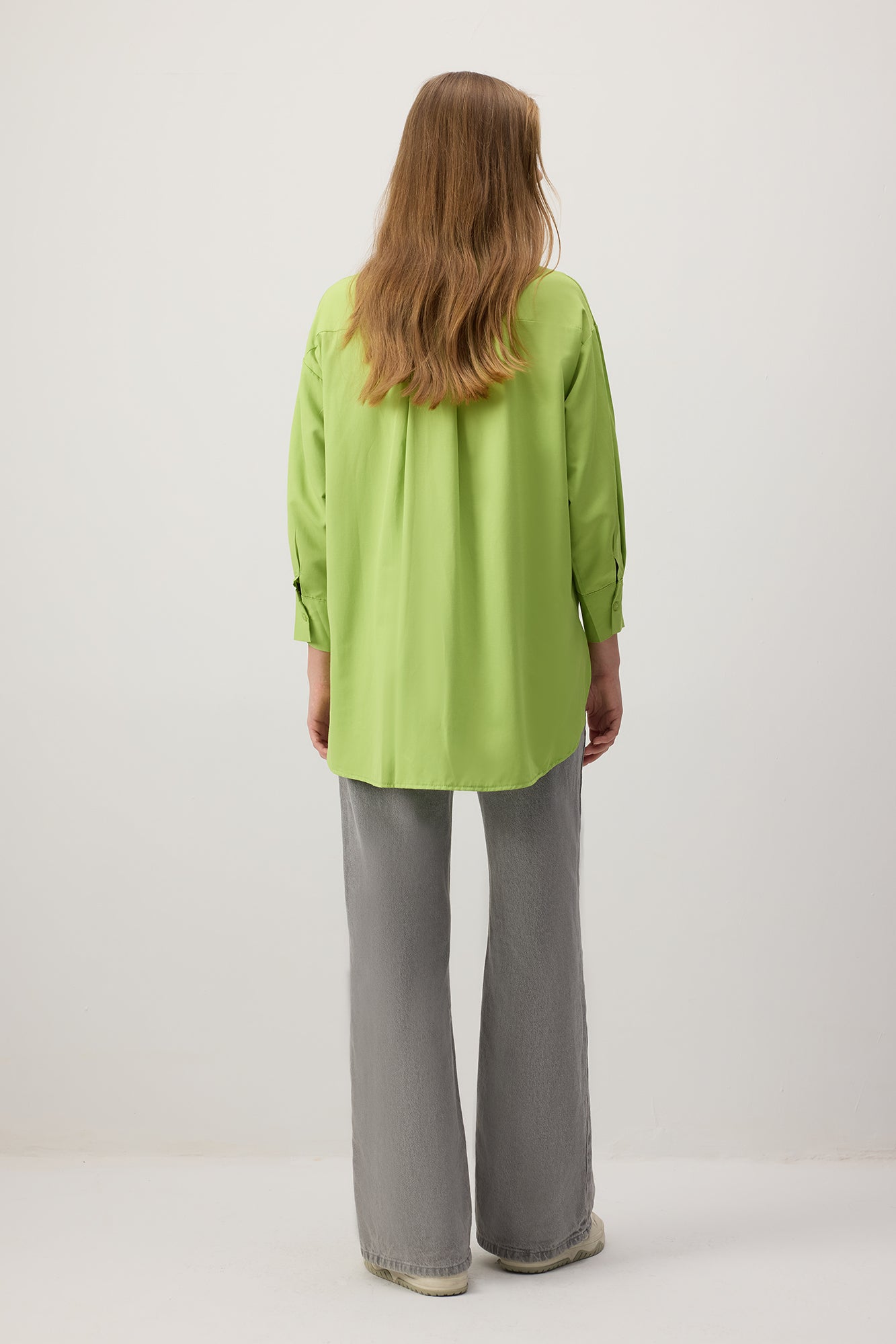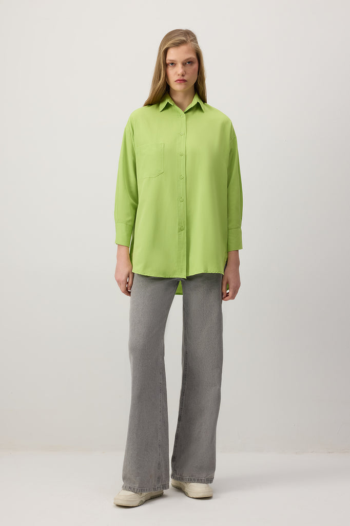 Rahat kesimiyle öne çıkan bu oversize gömlek, düşük omuz detayıyla modern bir siluet sunar. Ön kısmındaki tek cep detayıyla sade bir dinamizm kazanan model, uzun formu sayesinde hem tek başına hem de katmanlı görünümlerle kullanılabilir. Günlük ve casual kombinler için zamansız bir parçadır.