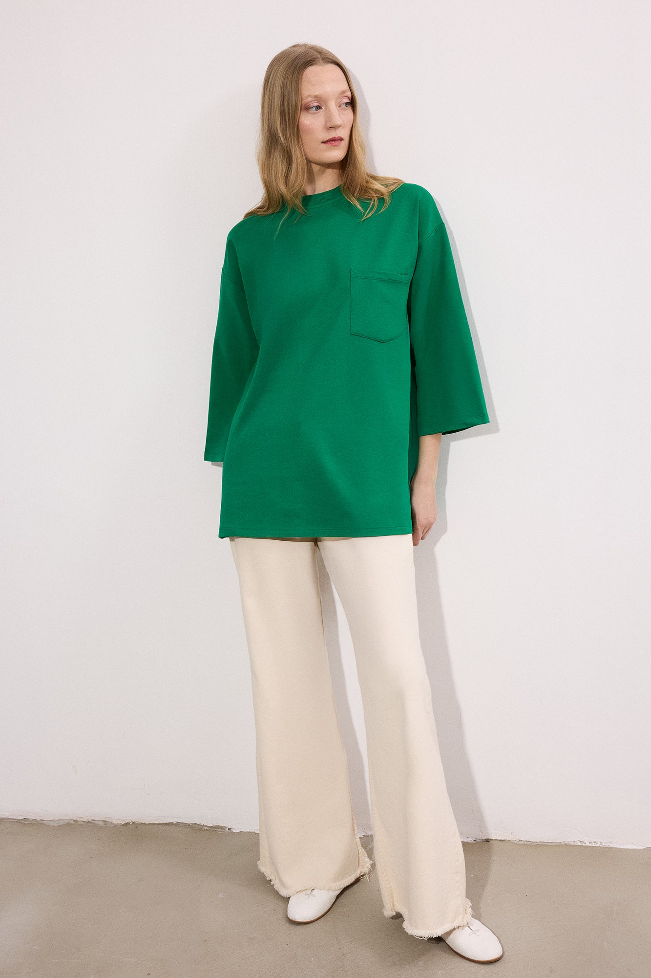Bisiklet yaka. Uzun kol. Ön kısımda cep detaylı. Örme tunik.