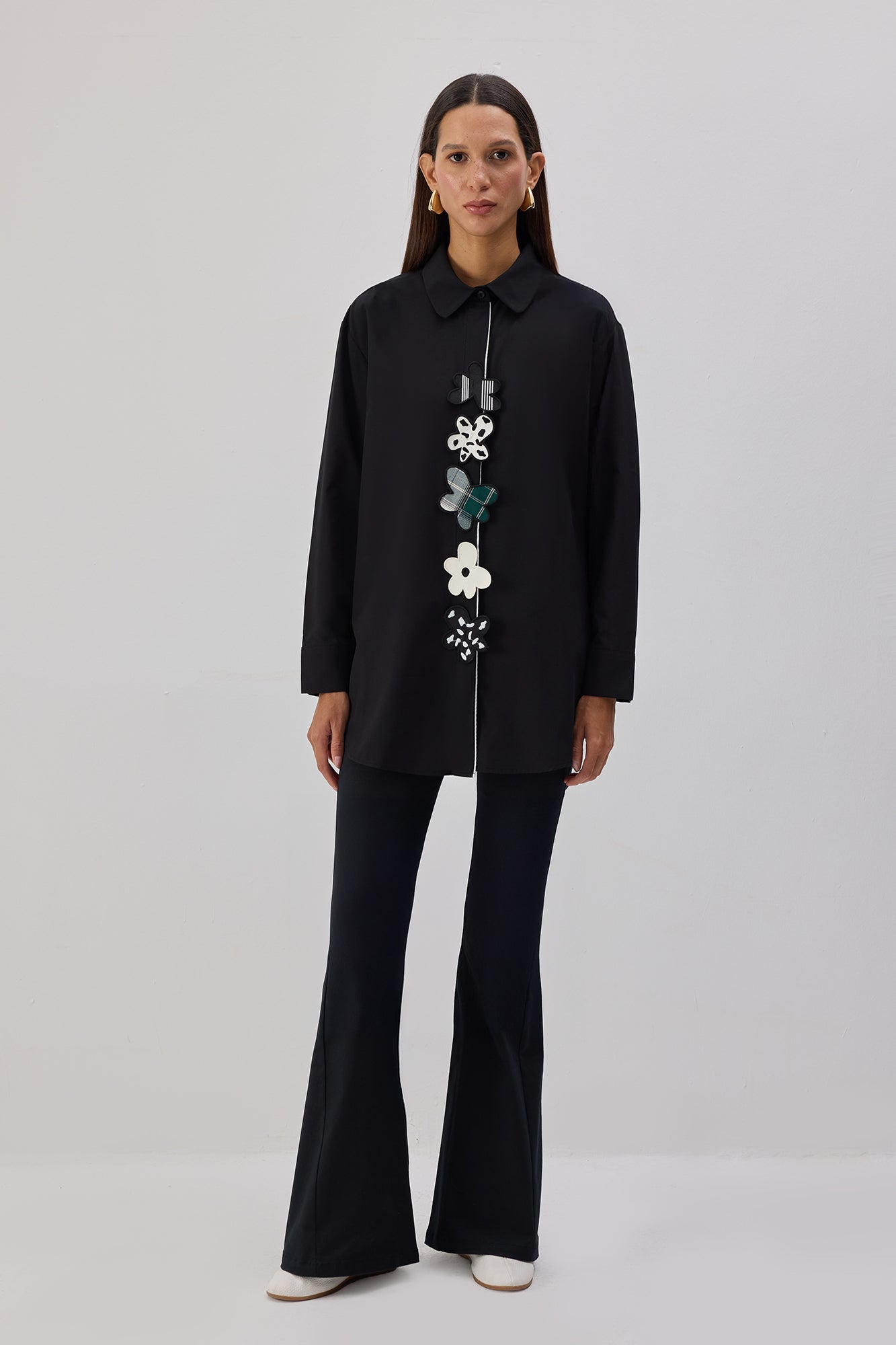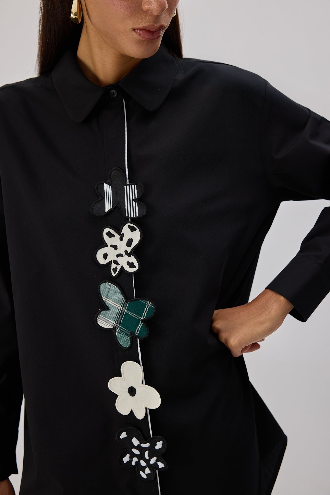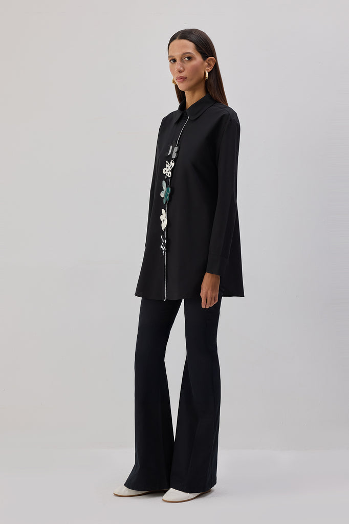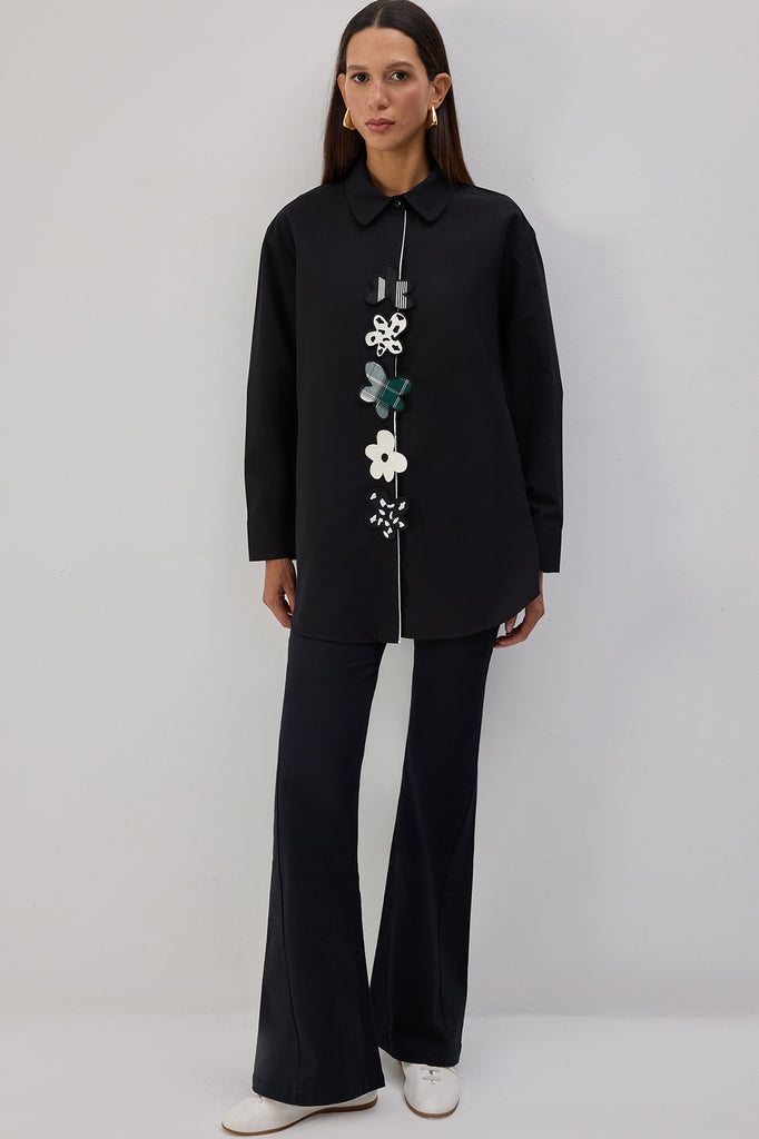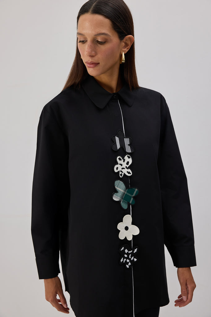 ÇİÇEK APLİKELİ POPLİN GÖMLEK