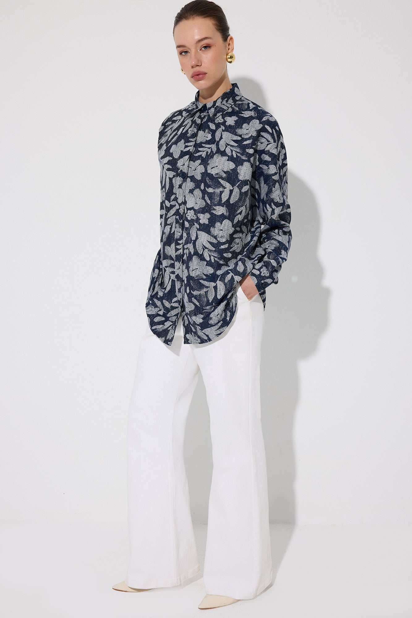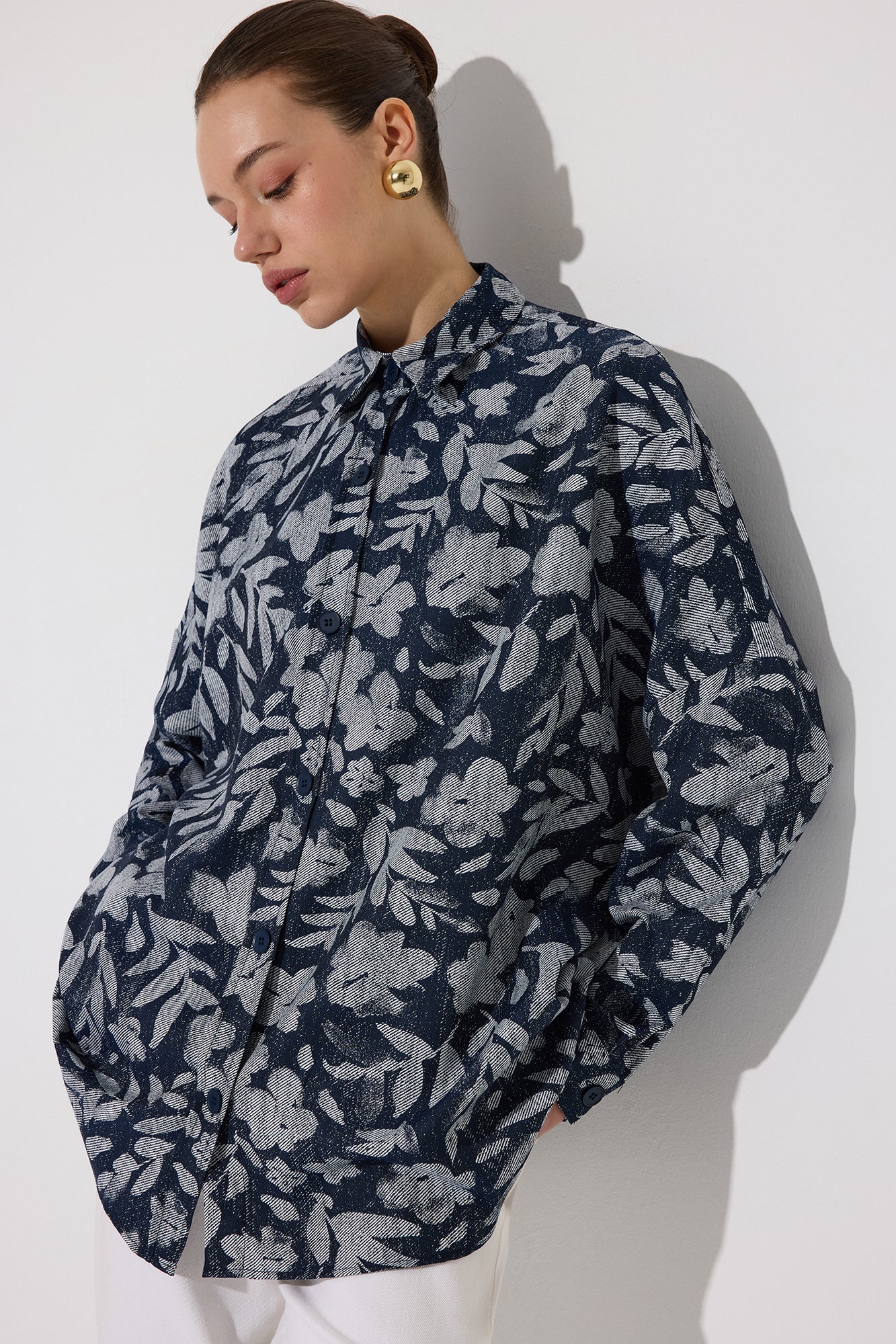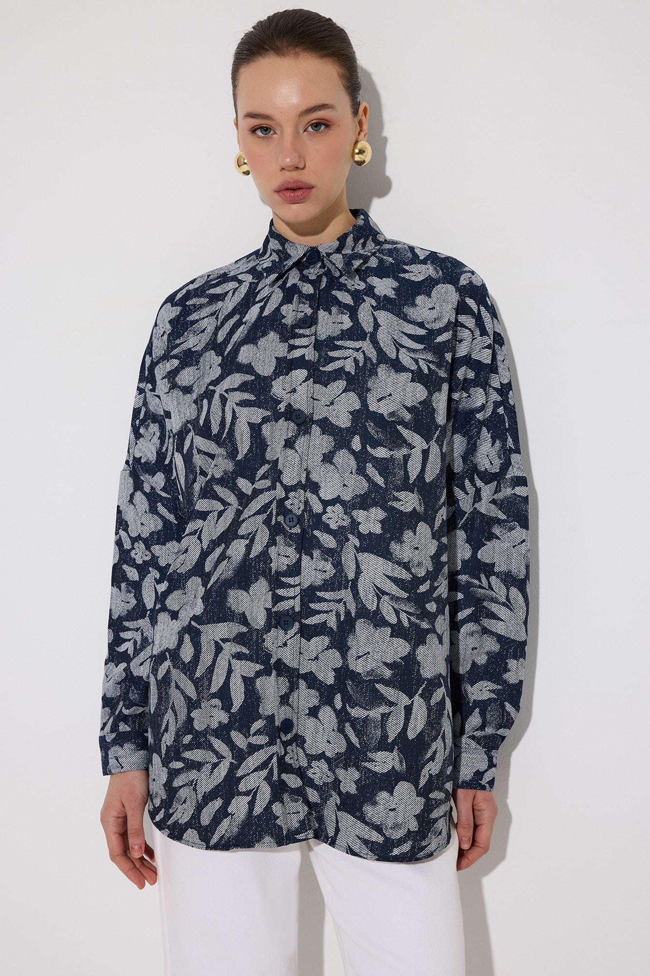 ÇİÇEK DESENLİ OVERSIZE GÖMLEK