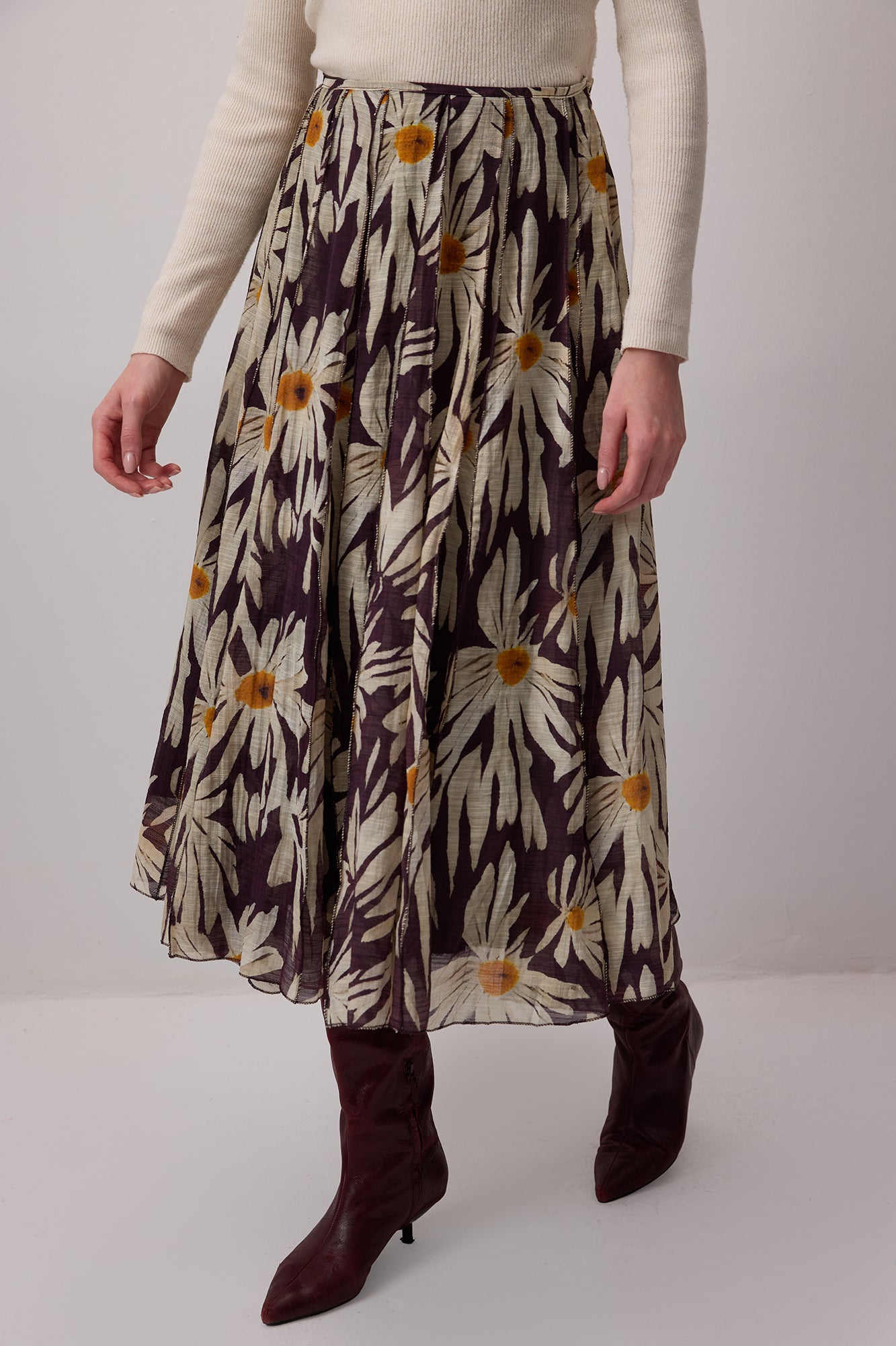 ÇİÇEK DESENLİ PİLELİ ETEK