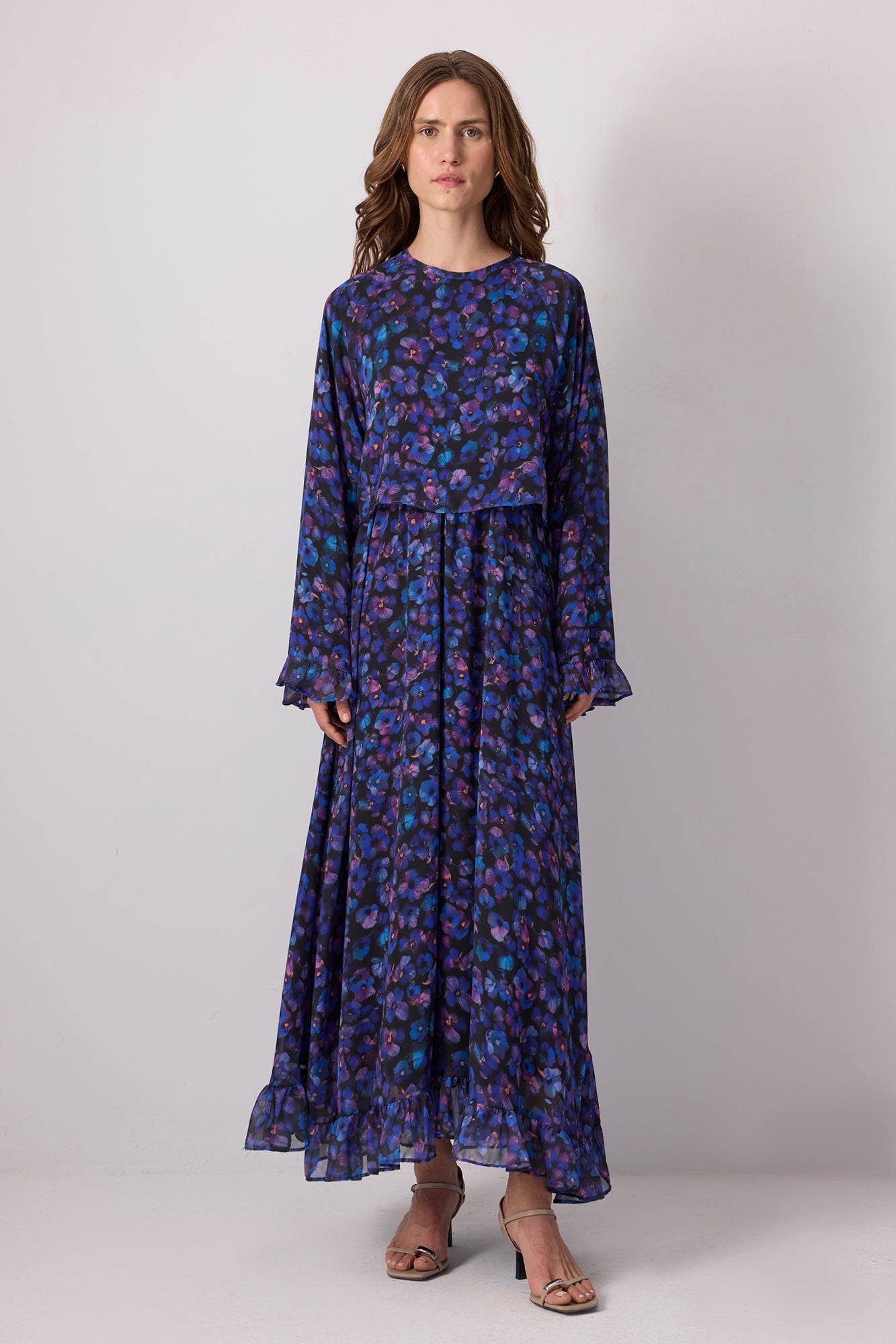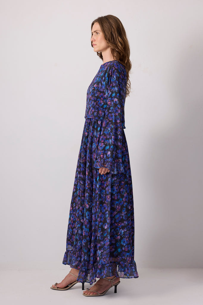 ÇİÇEK DESENLİ ŞİFON ELBİSE